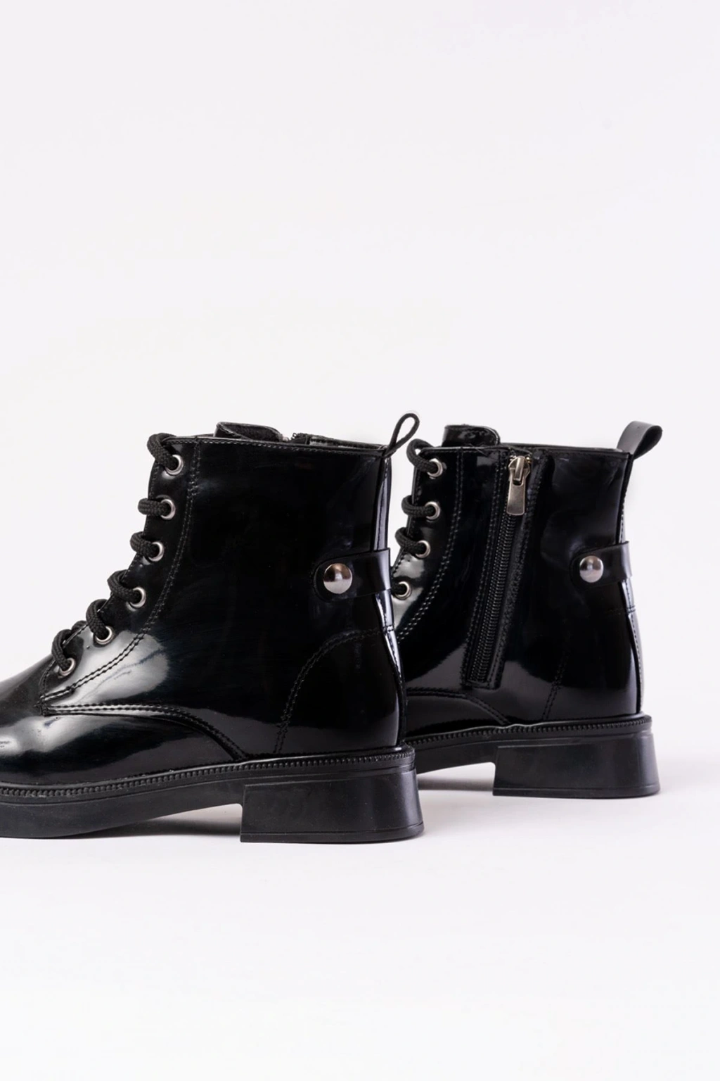 02-3033 Siyah Kırışık Rugan Fermuarlı Günlük Kadın Bot