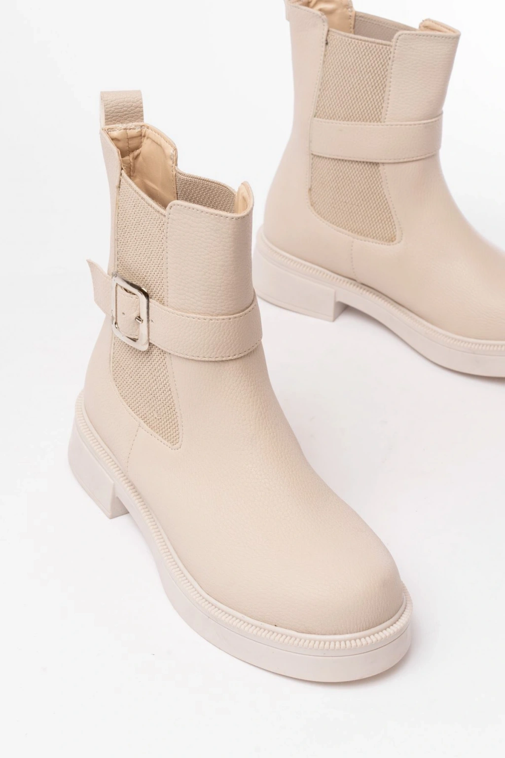 02-2004 Bej Toka Aksesuarlı Lastikli Günlük Kadın Bot