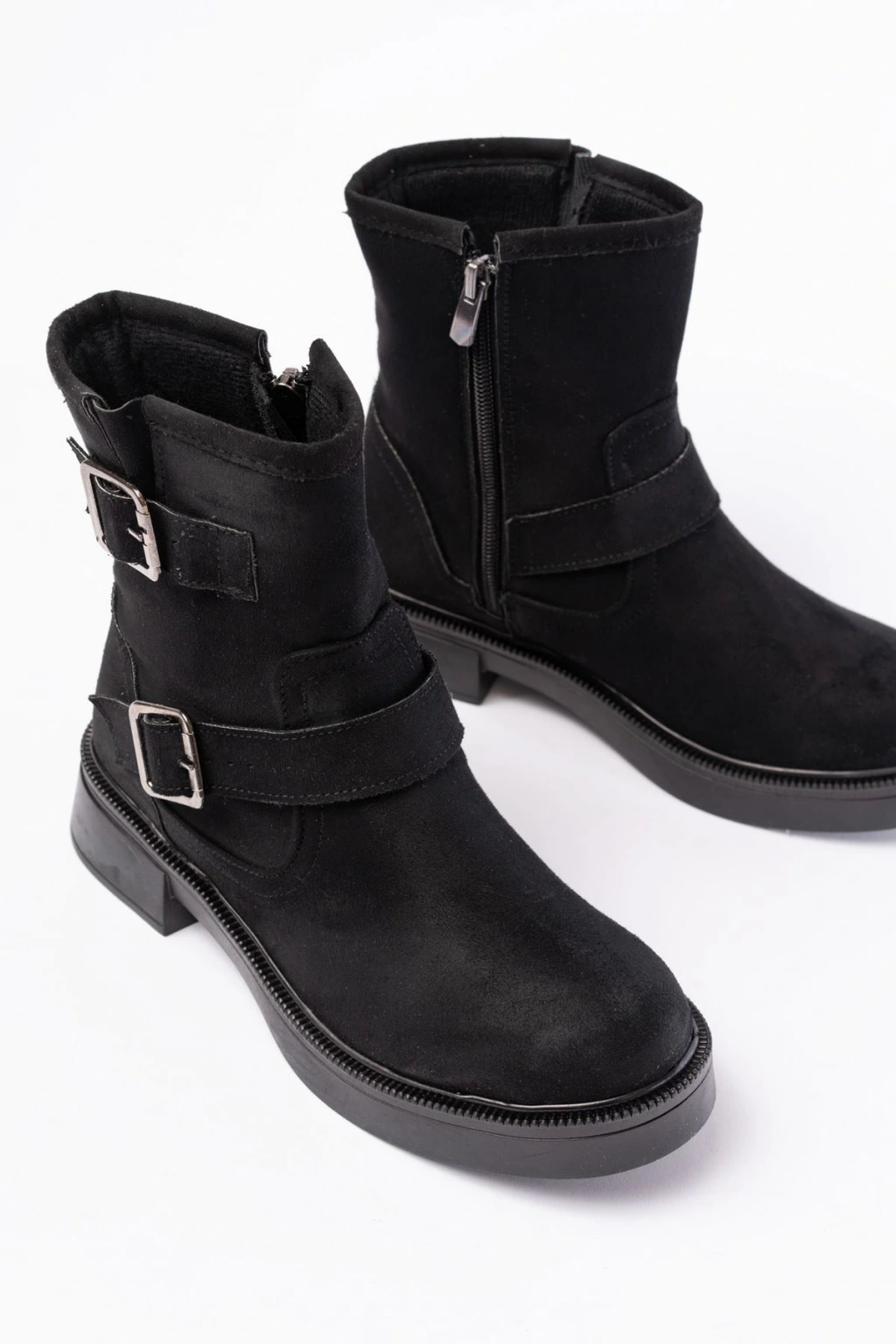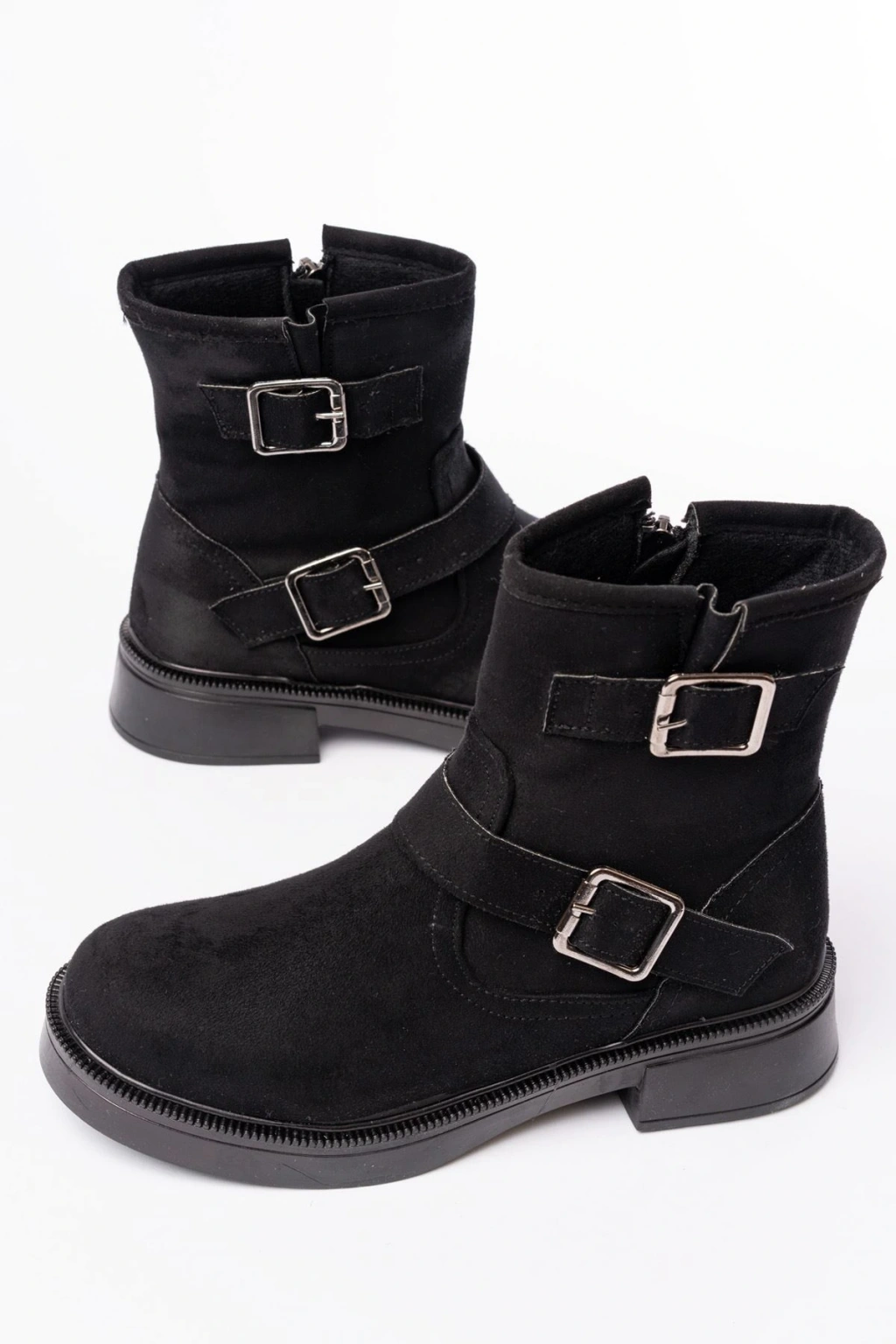 02-2014 Siyah Süet Toka Aksesuarlı Günlük Kadın Bot