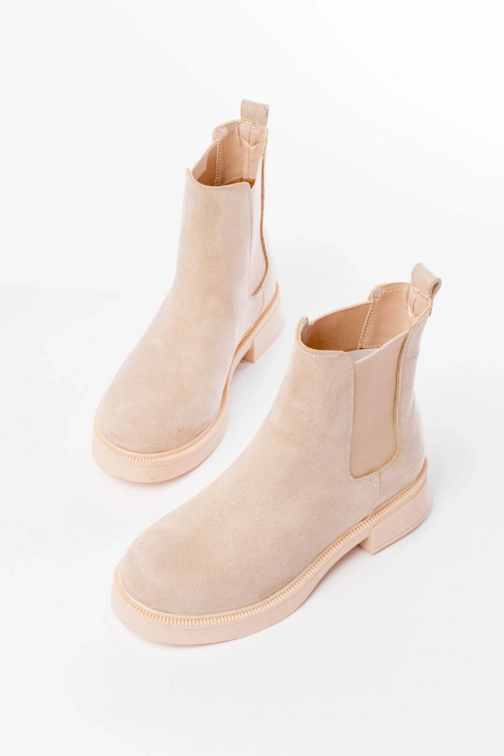 02-2137 Bej Süet Lastikli Günlük Kadın Bot