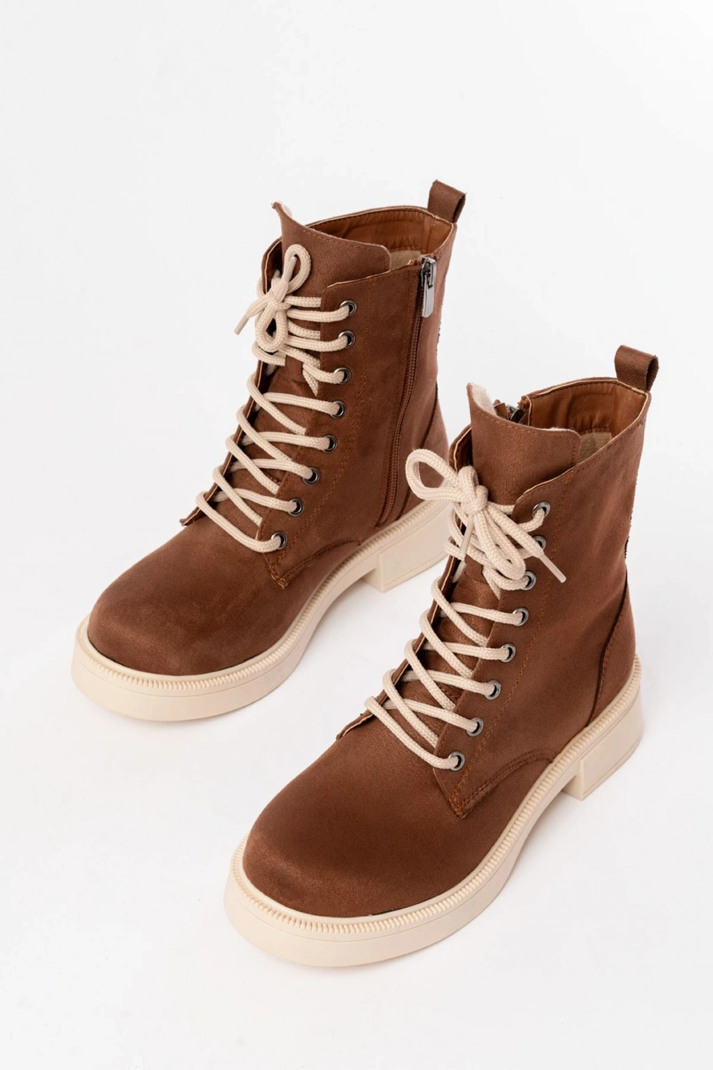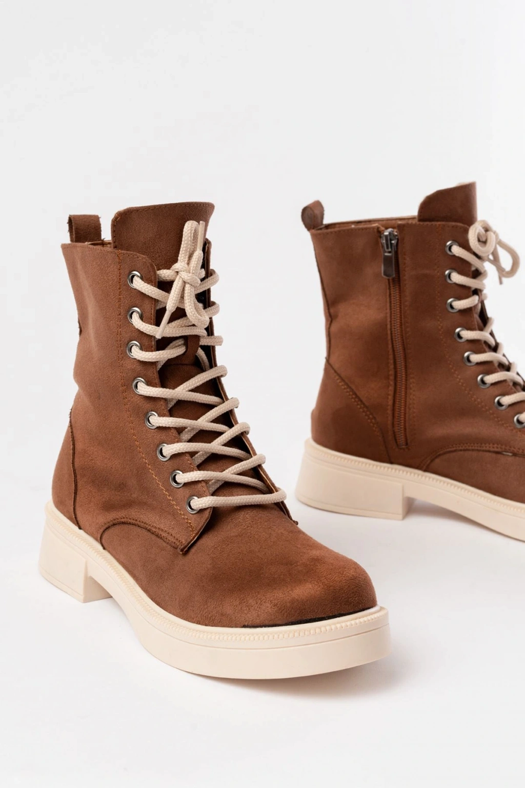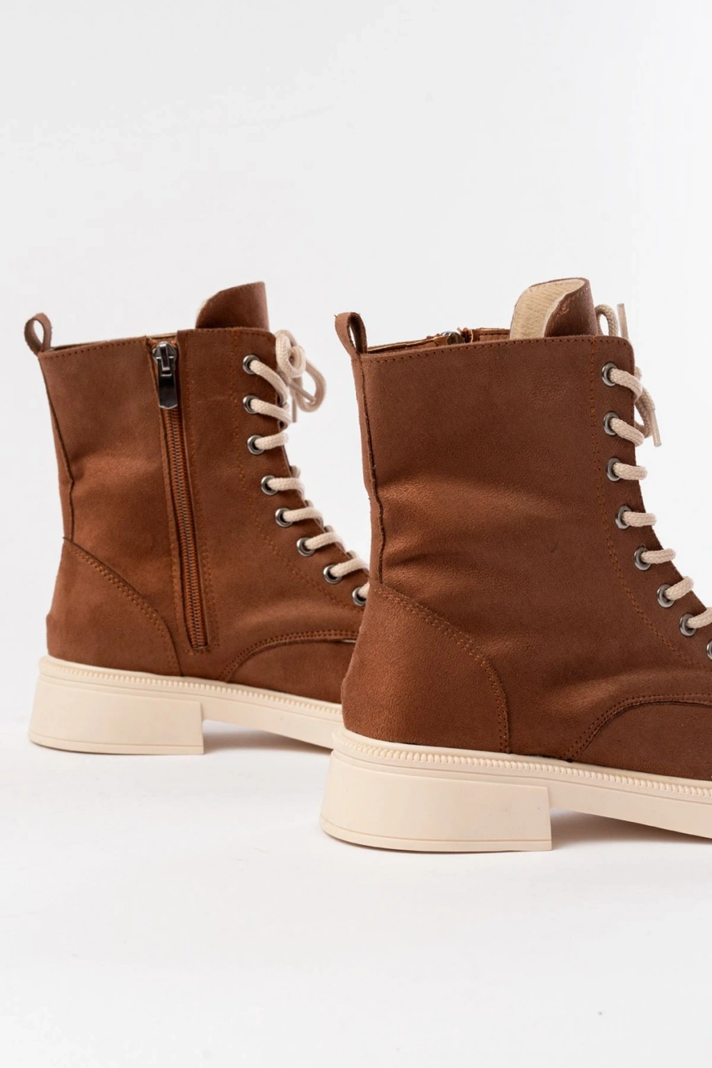 02-356 Taba Süet Düz Topuklu Bağcıklı Fermuarlı Günlük Kadın Bot