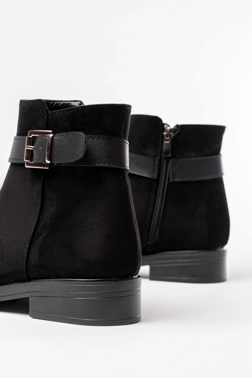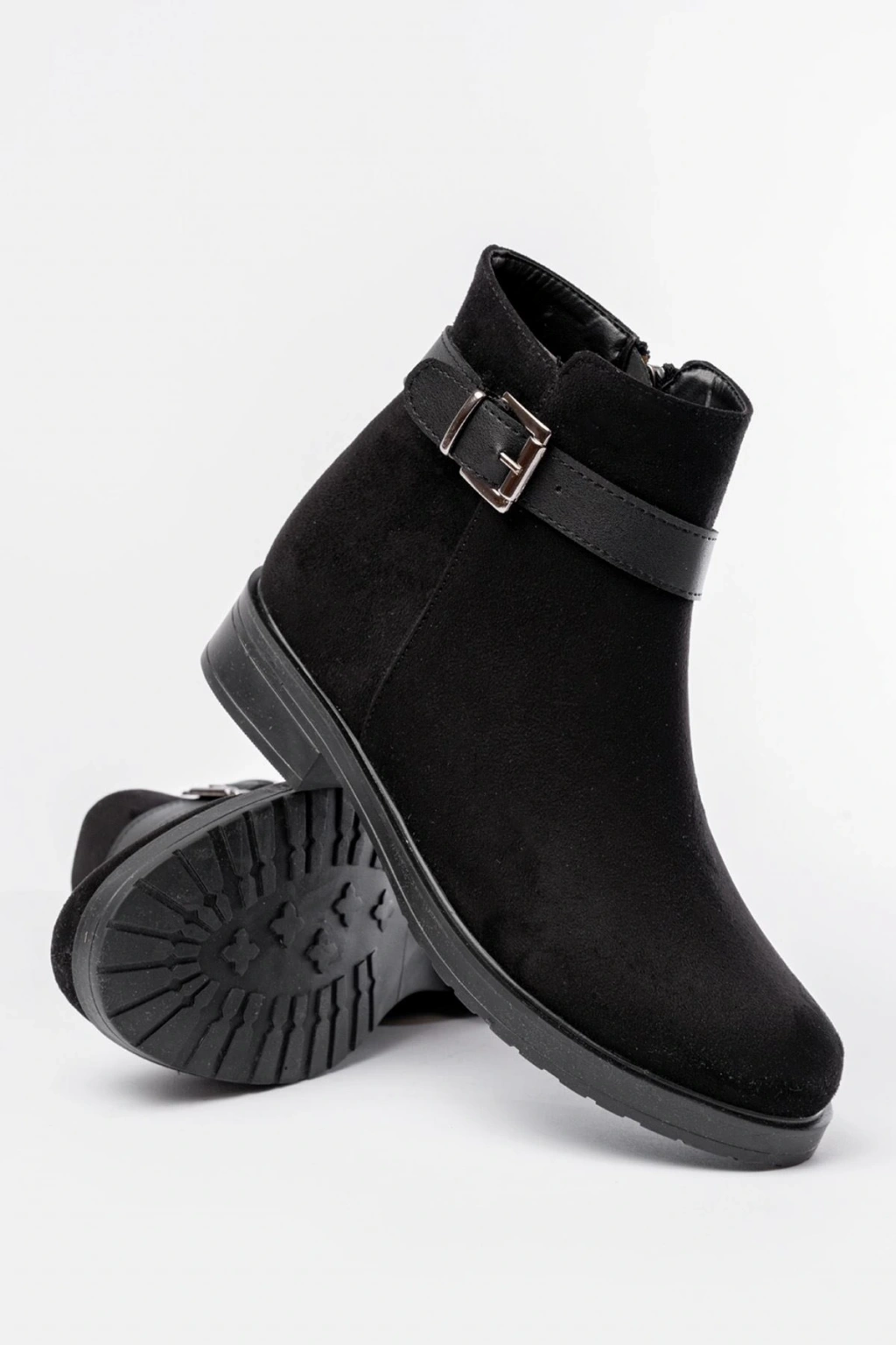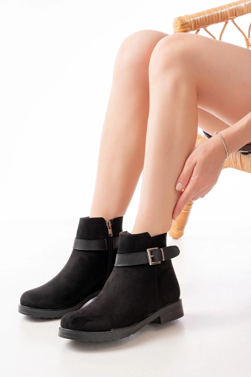 165-204/1 Siyah Süet Toka Aksesuarlı Fermuarlı Günlük Kadın Bot