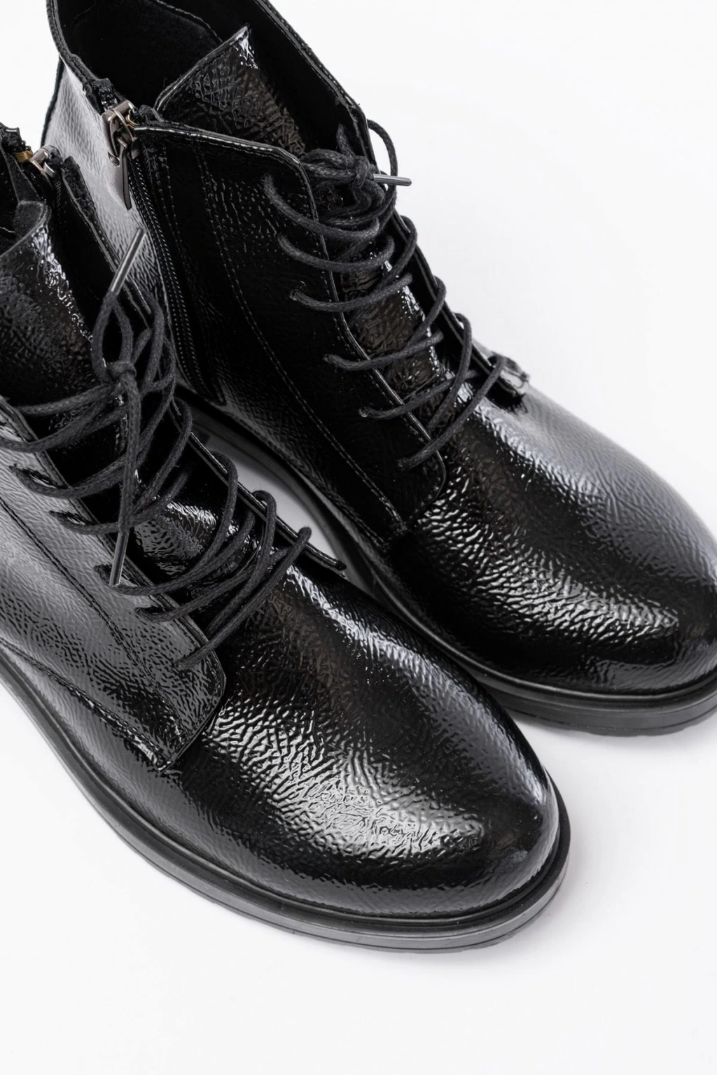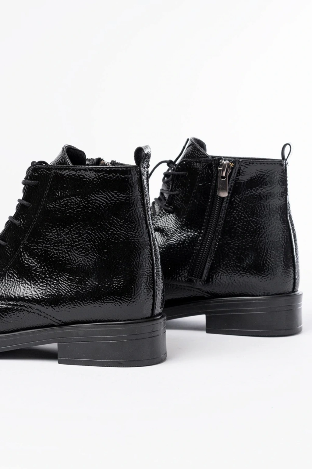 02-3033 Siyah Kırışık Rugan Fermuarlı Günlük Kadın Bot
