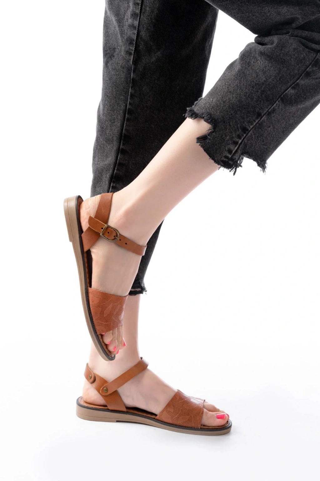 205-08 Taba Garni Ortopedik Hakiki Deri Kadın Sandalet