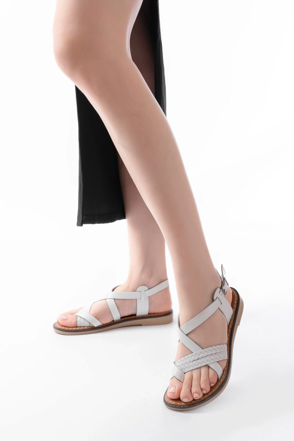1001-1001 Beyaz Bilekten Bağcıklı Kadın Sandalet