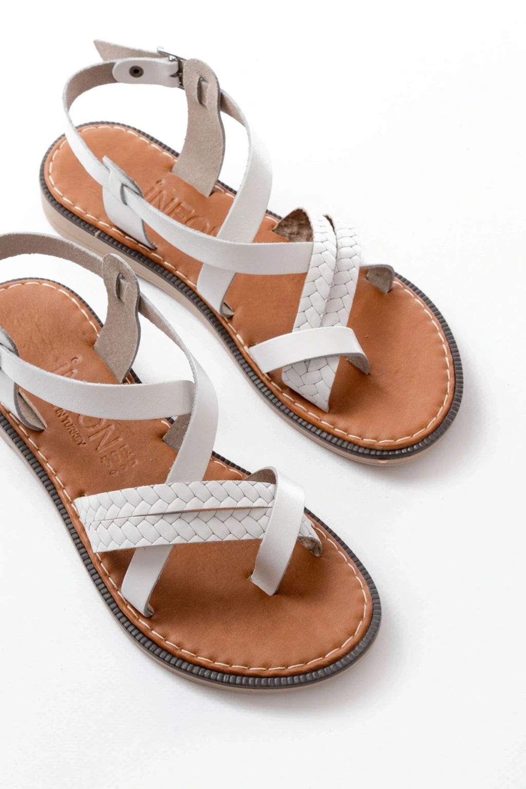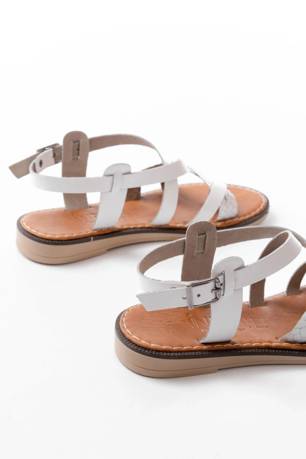 205-08 Beyaz Garni Ortopedik Hakiki Deri Kadın Sandalet