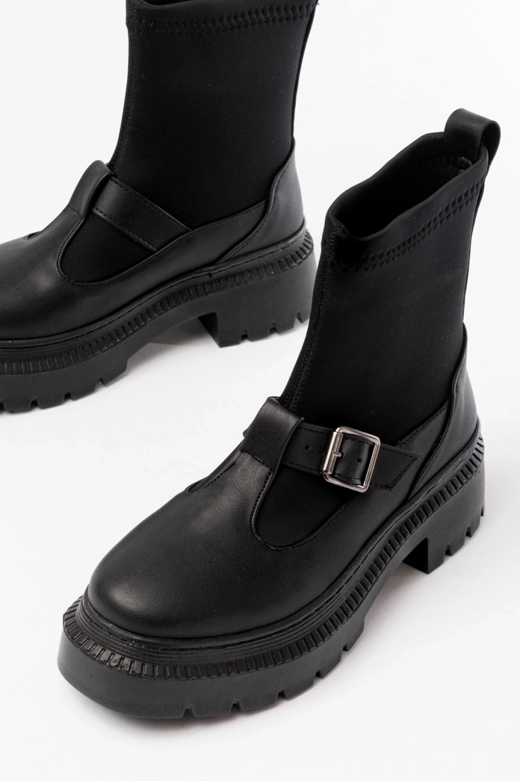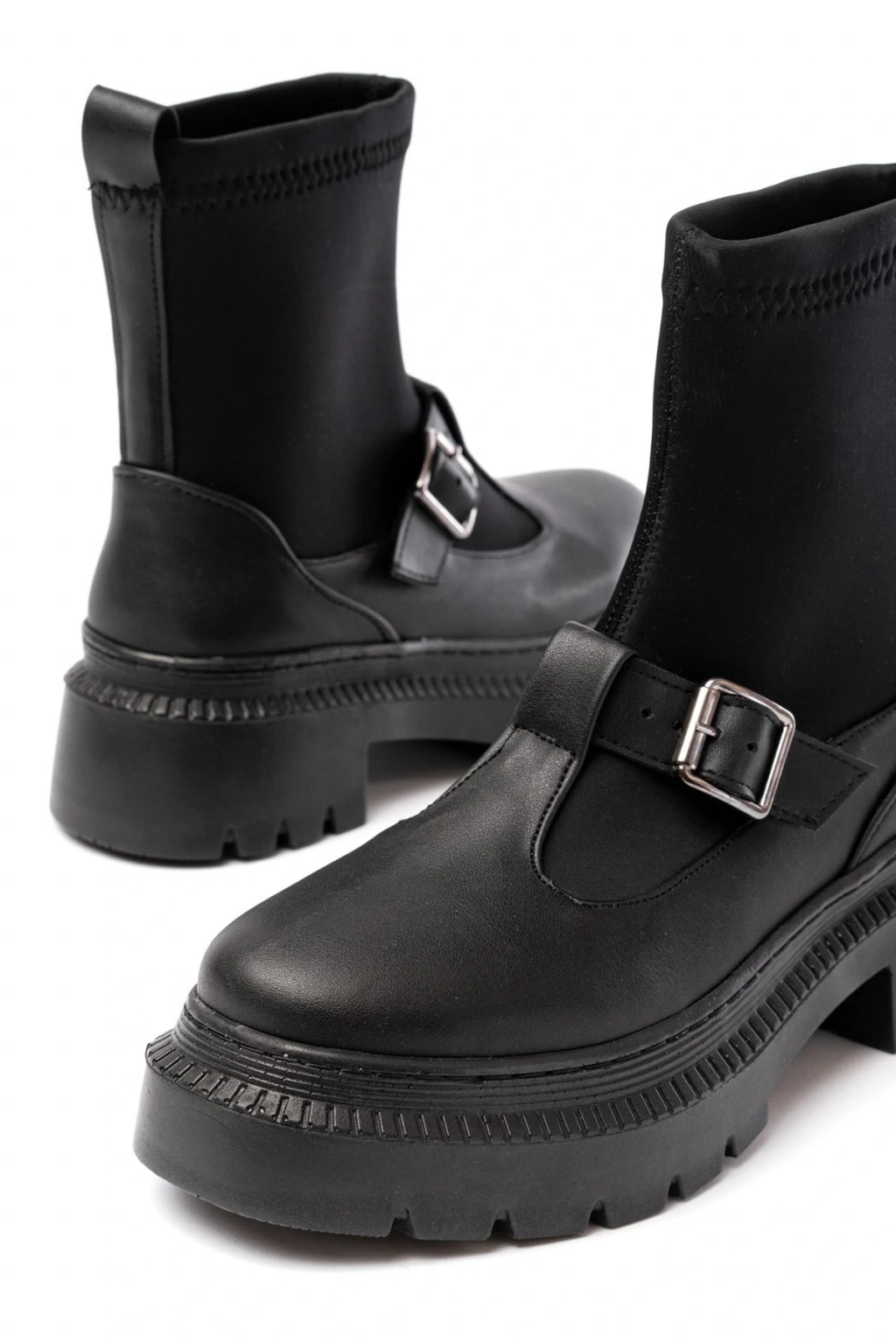 02-02 Siyah Taş Aksesuarlı Lastikli Günlük Kadın Bot