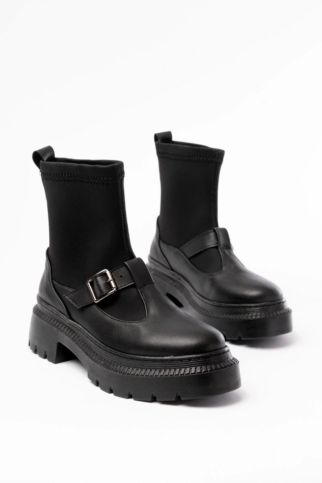 K-815 Siyah Lastikli Yüksek Tabanlı Günlük Kadın Bot