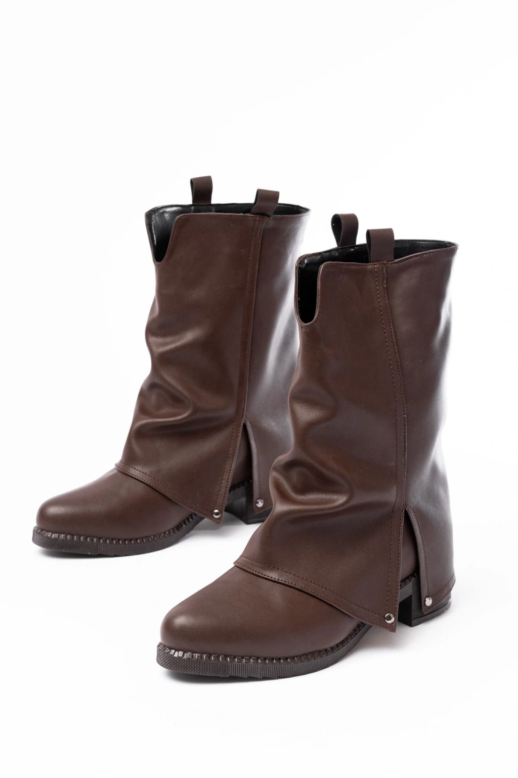 02-2013 Kahverengi Toka Aksesuarlı Fermuarlı Günlük Kadın Bot