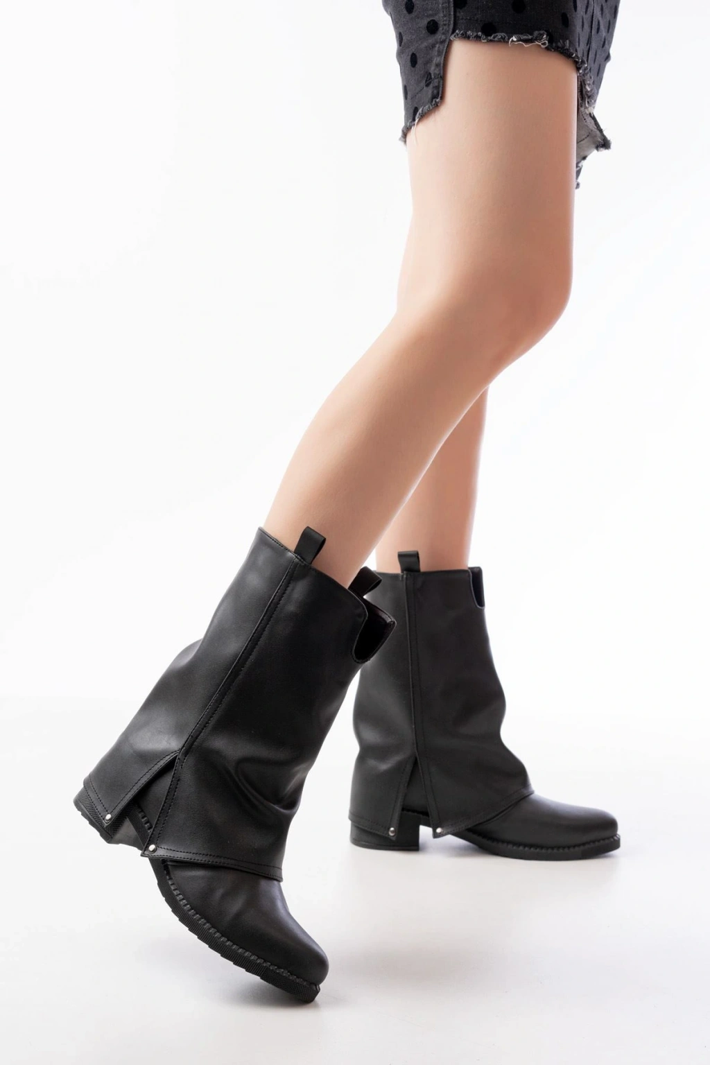 02-2013 Siyah Toka Aksesuarlı Fermuarlı Günlük Kadın Bot