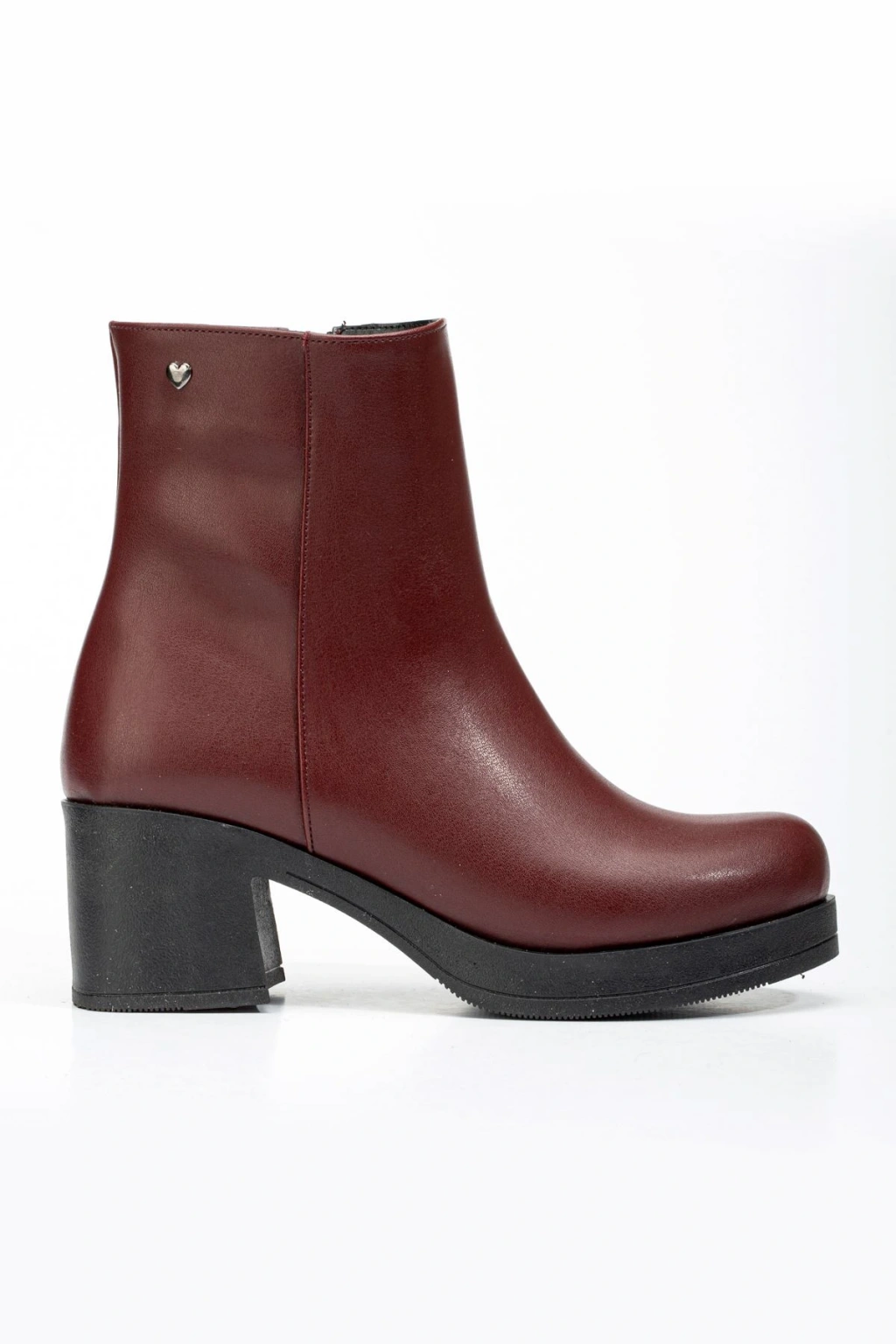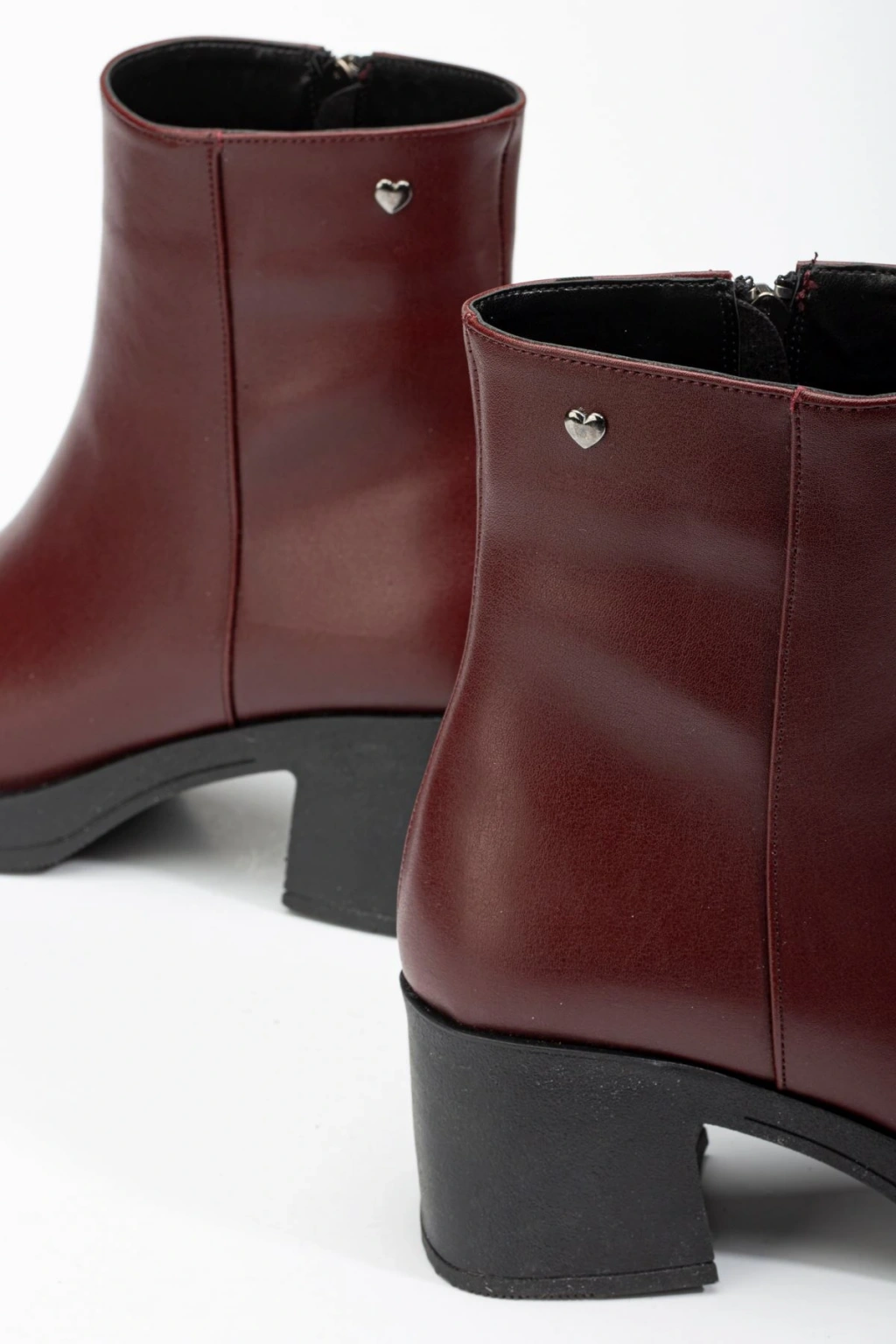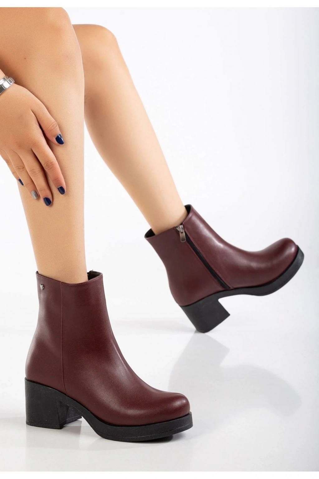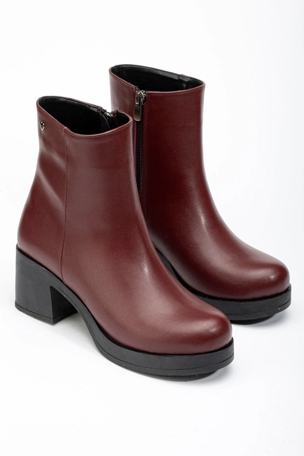 5109-3022 Bordo Fermuarlı Kalın Topuklu Günlük Kadın Bot