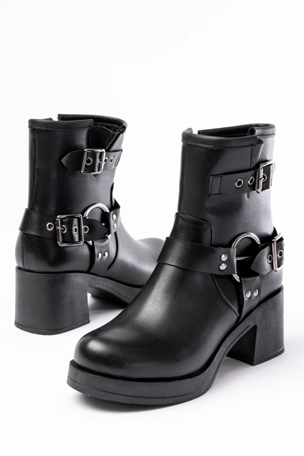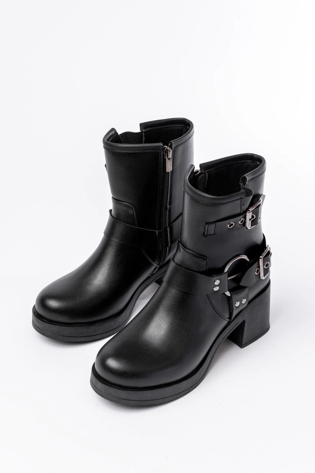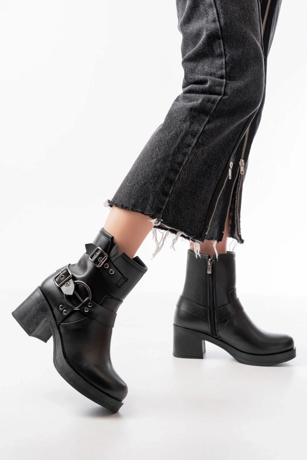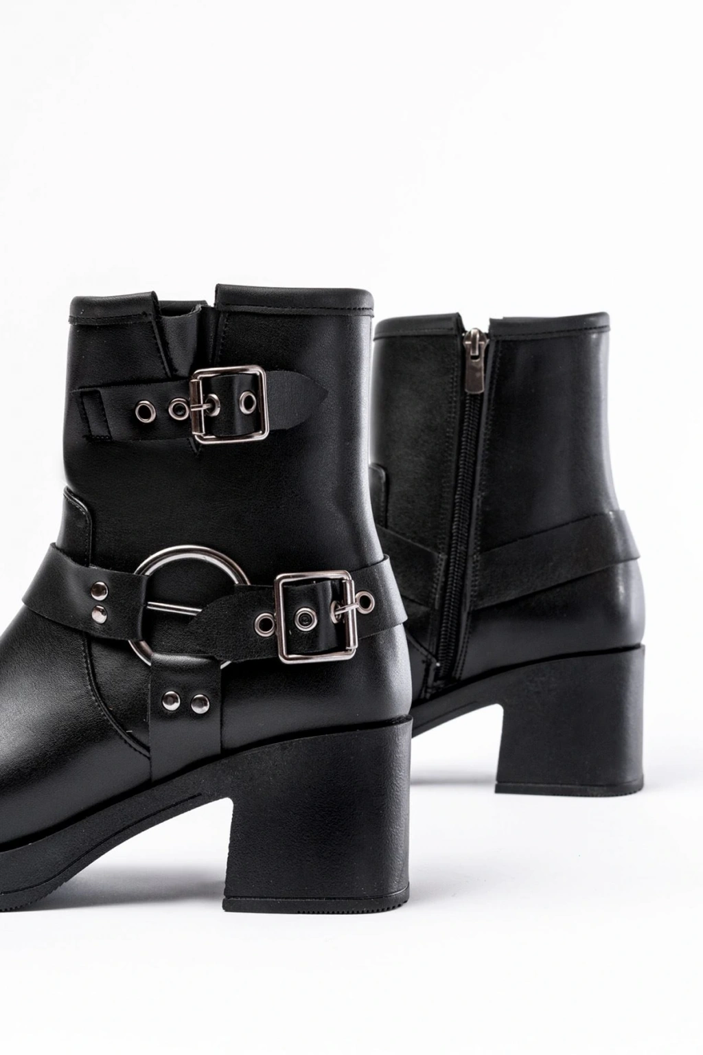 5109-3028 Siyah Toka Aksesuarlı Fermuarlı Topuklu Günlük Kadın Bot