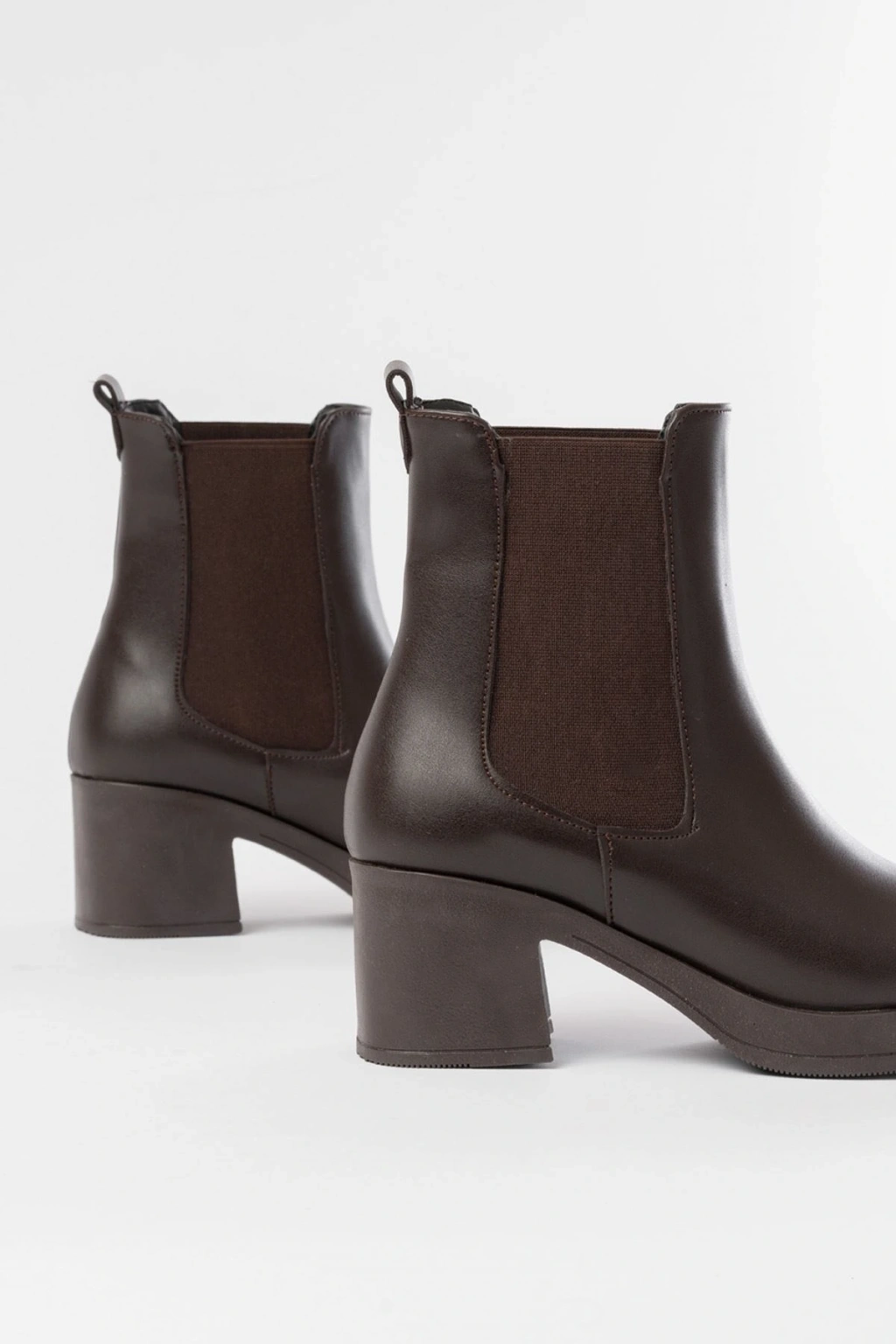 5109-3056 Kahverengi Lastikli Kalın Topuklu Günlük Kadın Bot