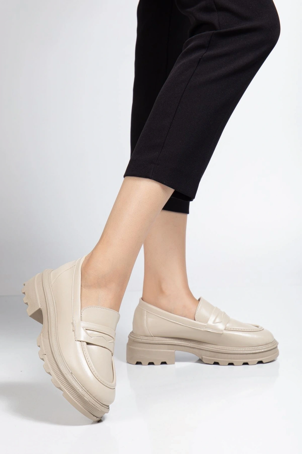745-771 Bej Kadın Günlük Yüksek Tabanlı Loafer Ayakkabı