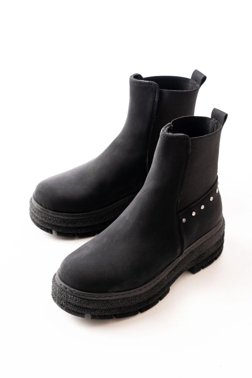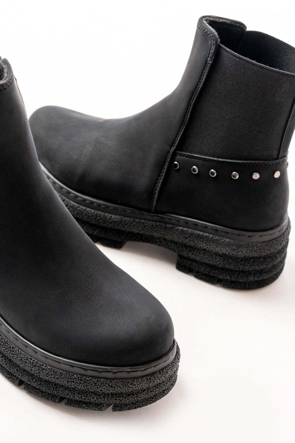 02-02 Siyah Taş Aksesuarlı Lastikli Günlük Kadın Bot
