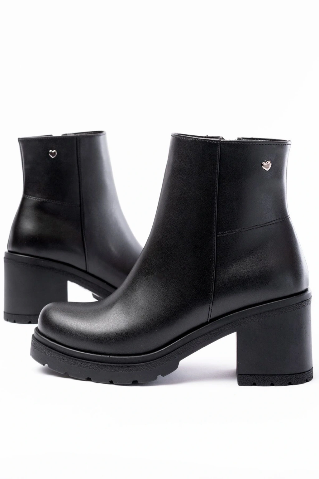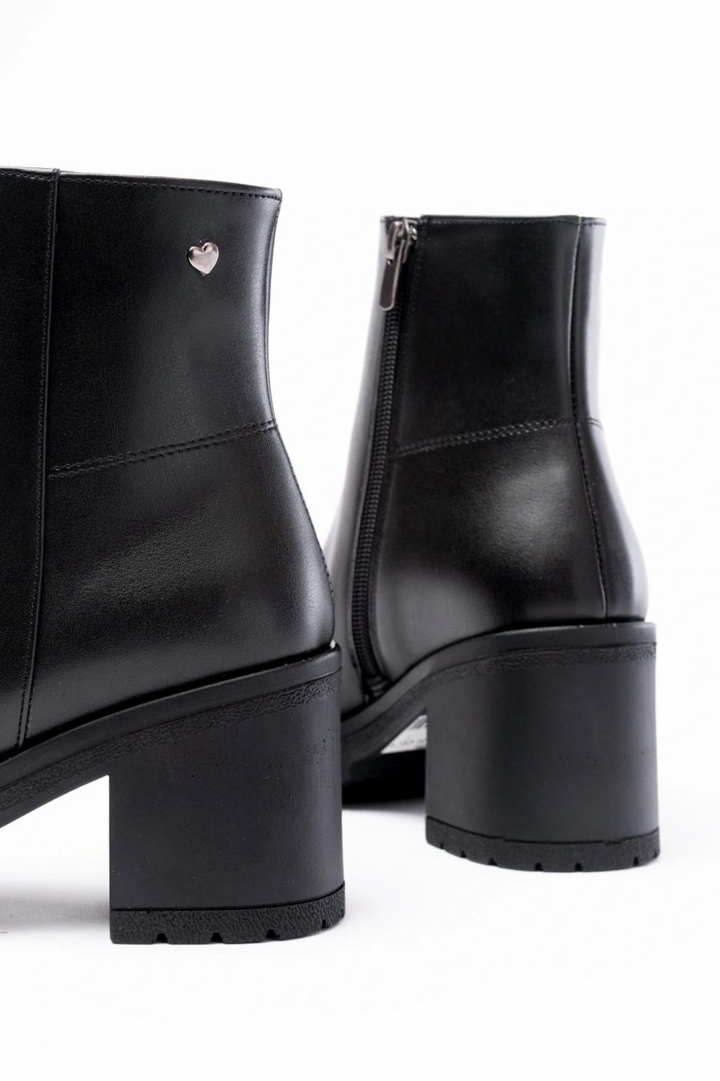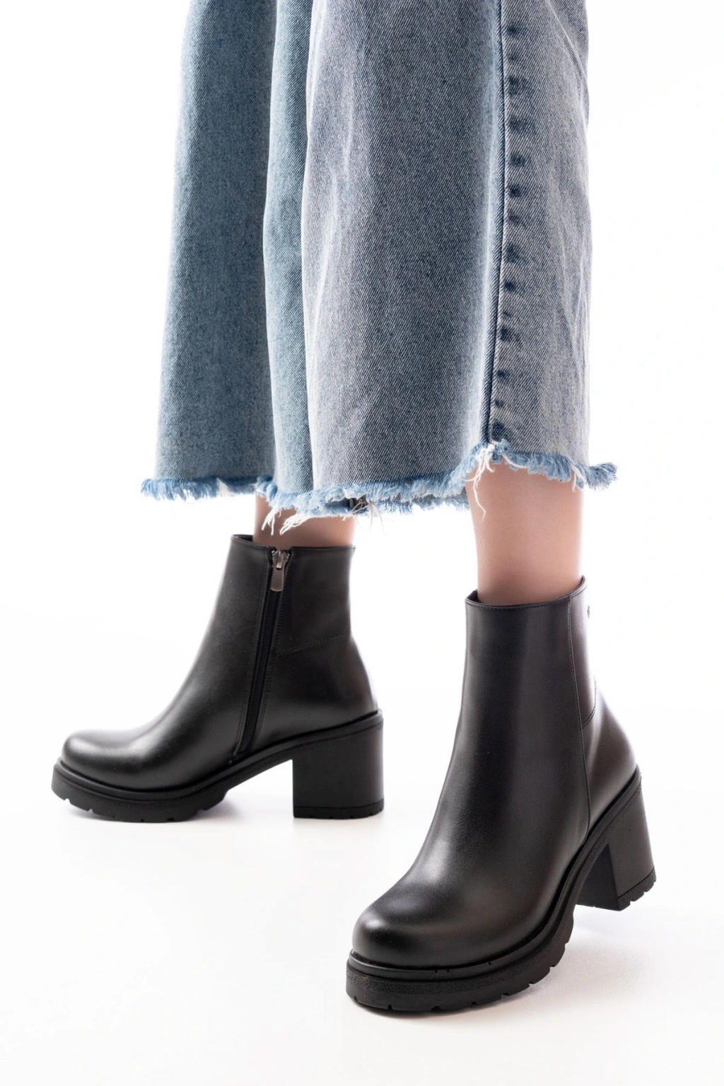 767-3020 Siyah Fermuarlı Kalın Topuklu Günlük Kadın Bot
