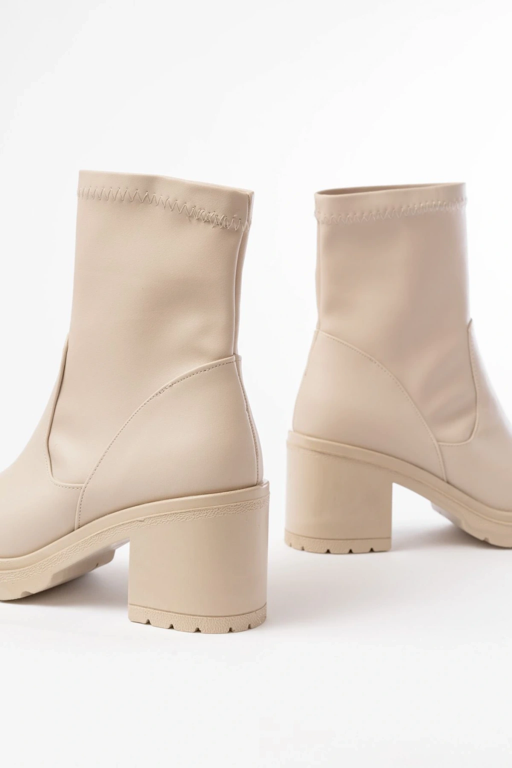767-3040 Bej Günlük Kalın Topuklu Kadın Bot