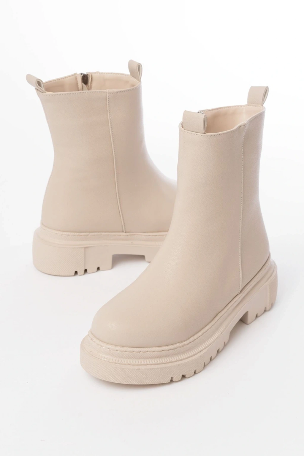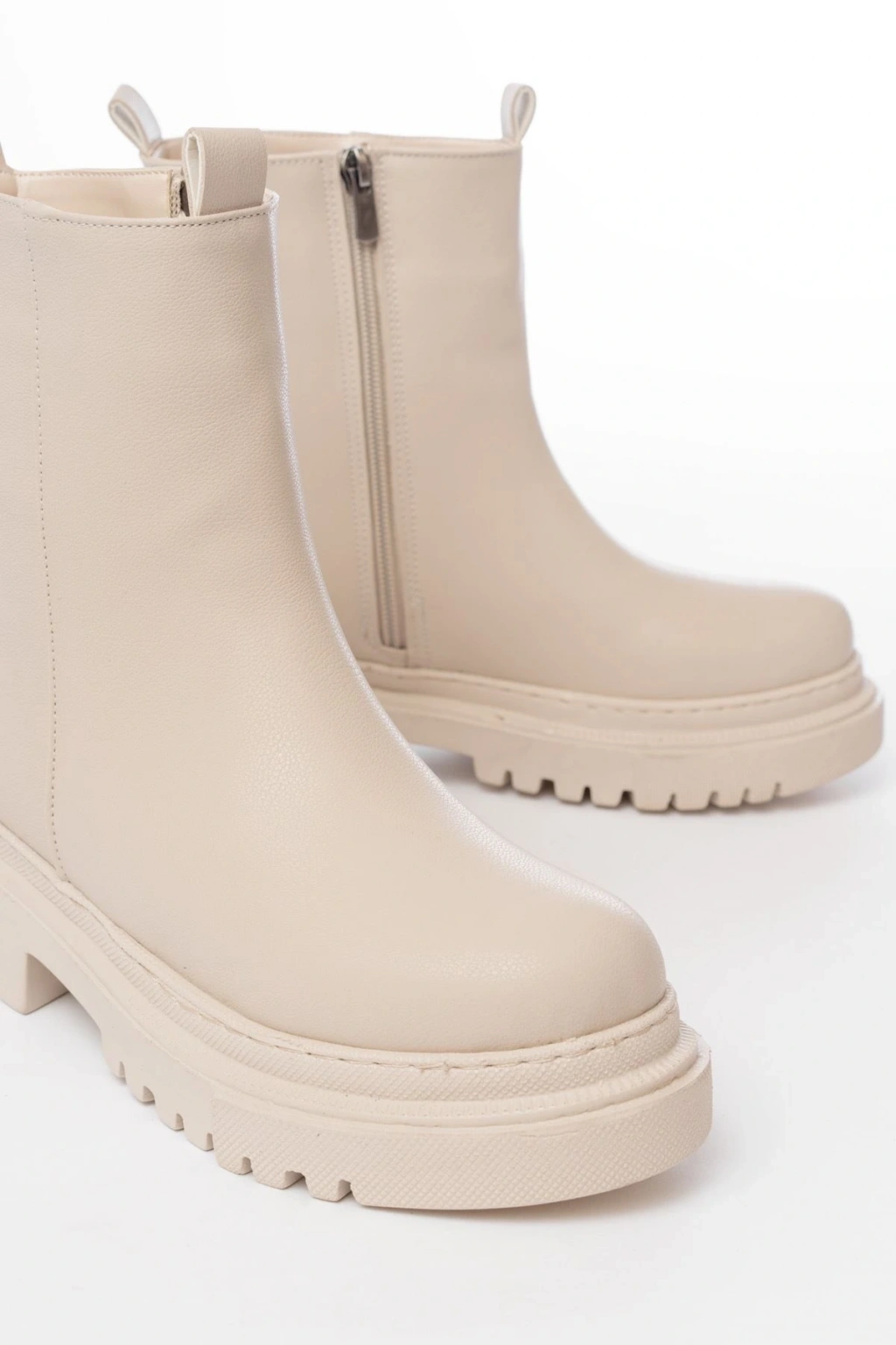 812-2012 Bej Luna Fermuarlı Günlük Kadın Bot