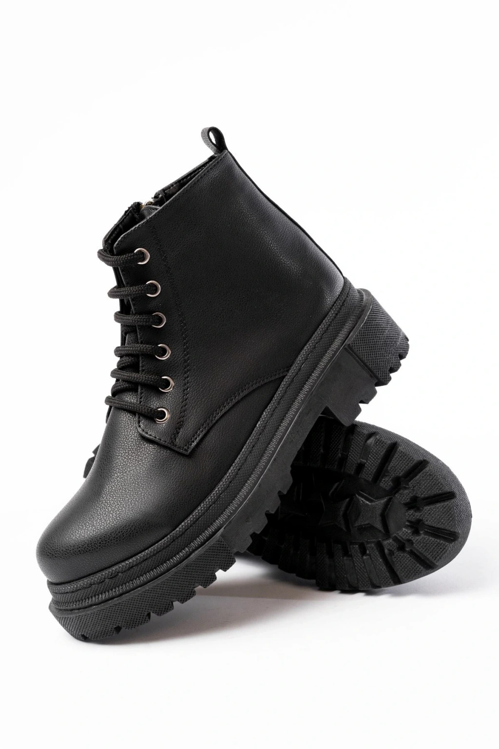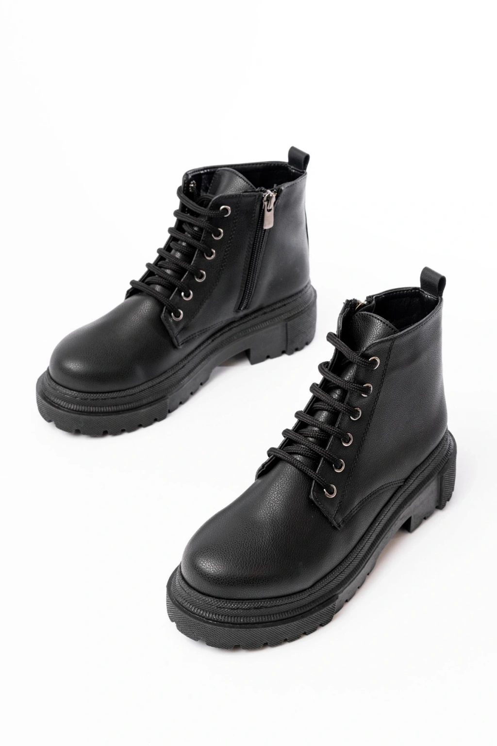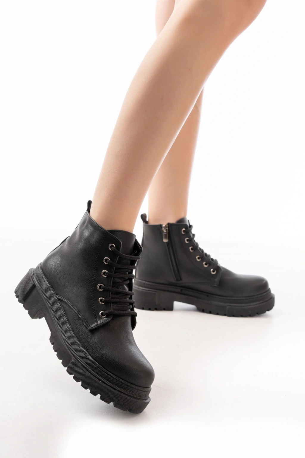 812-2129 Siyah Bağcıklı Fermuarlı Günlük Kadın Bot