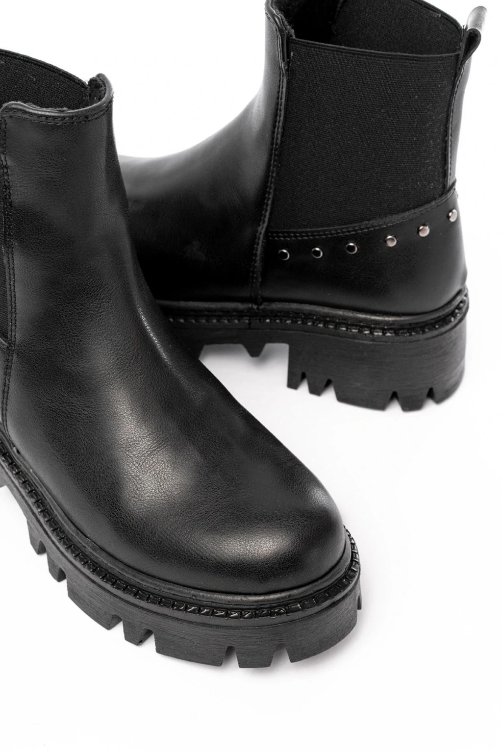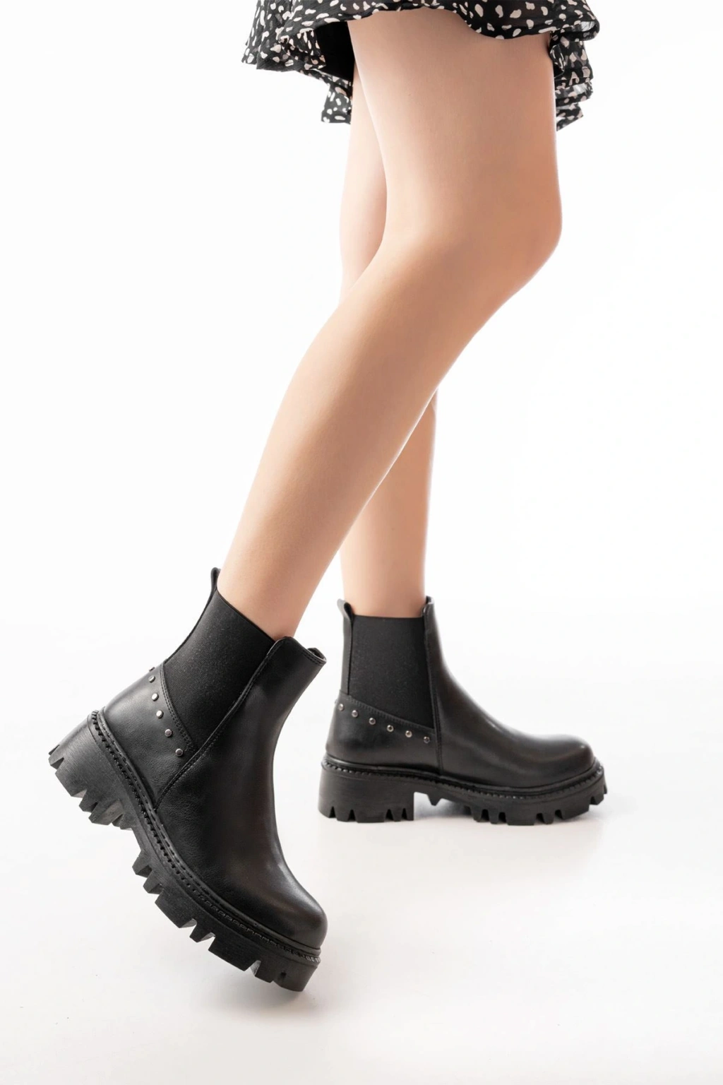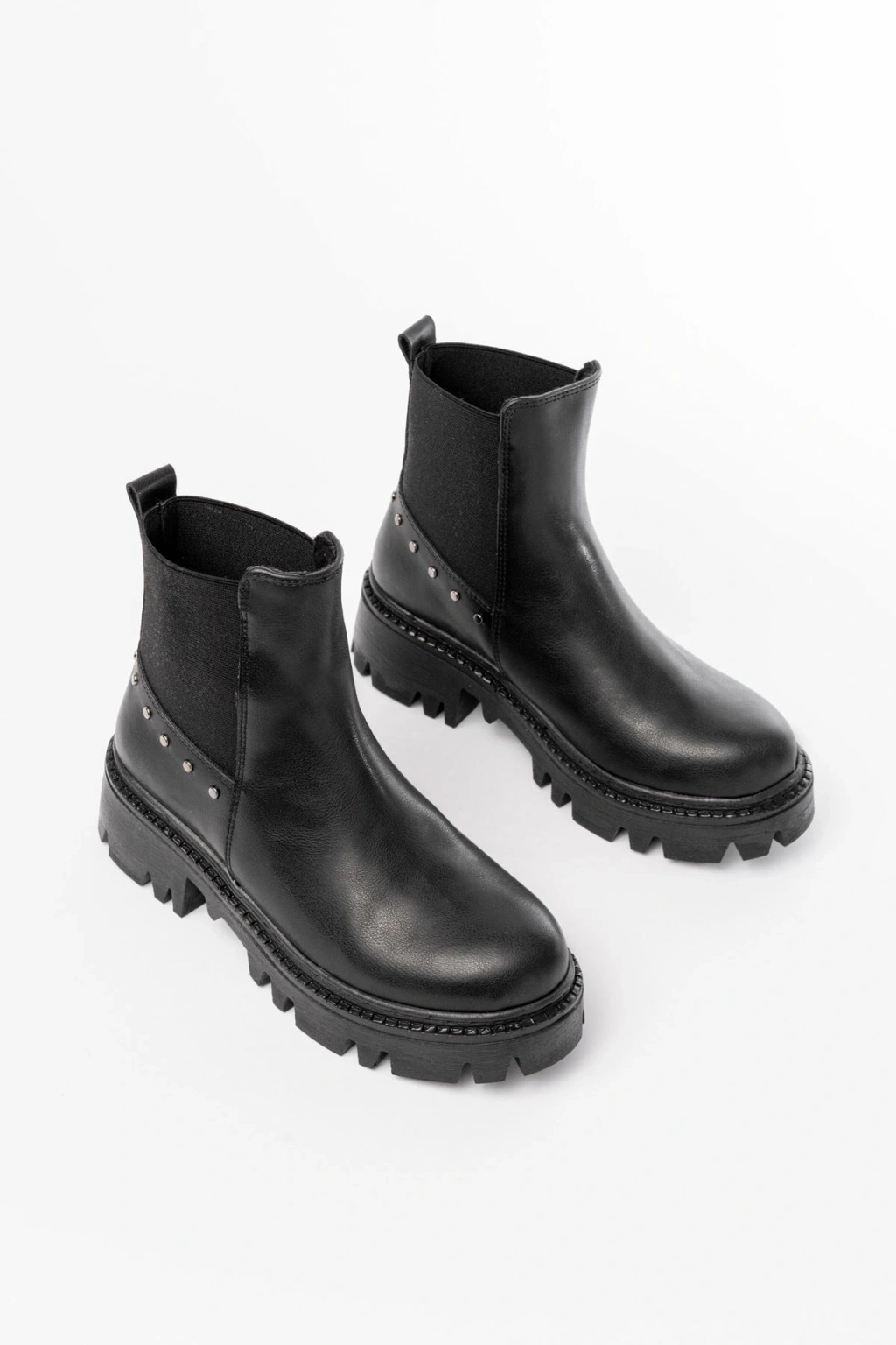 02-02 Siyah Taş Aksesuarlı Lastikli Günlük Kadın Bot