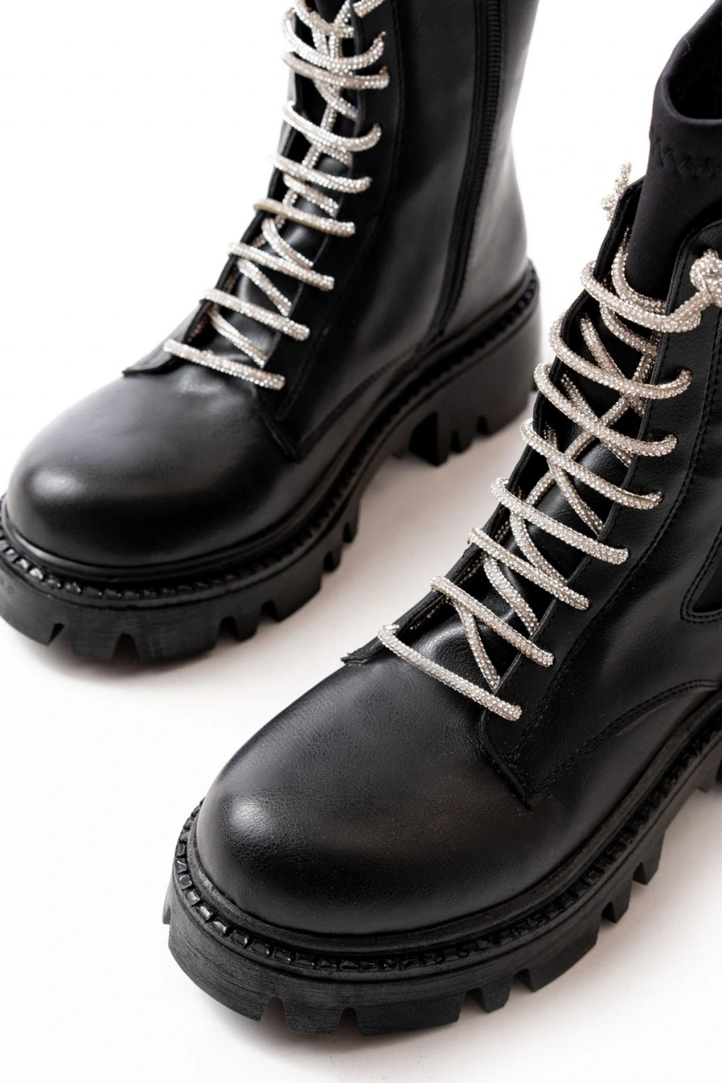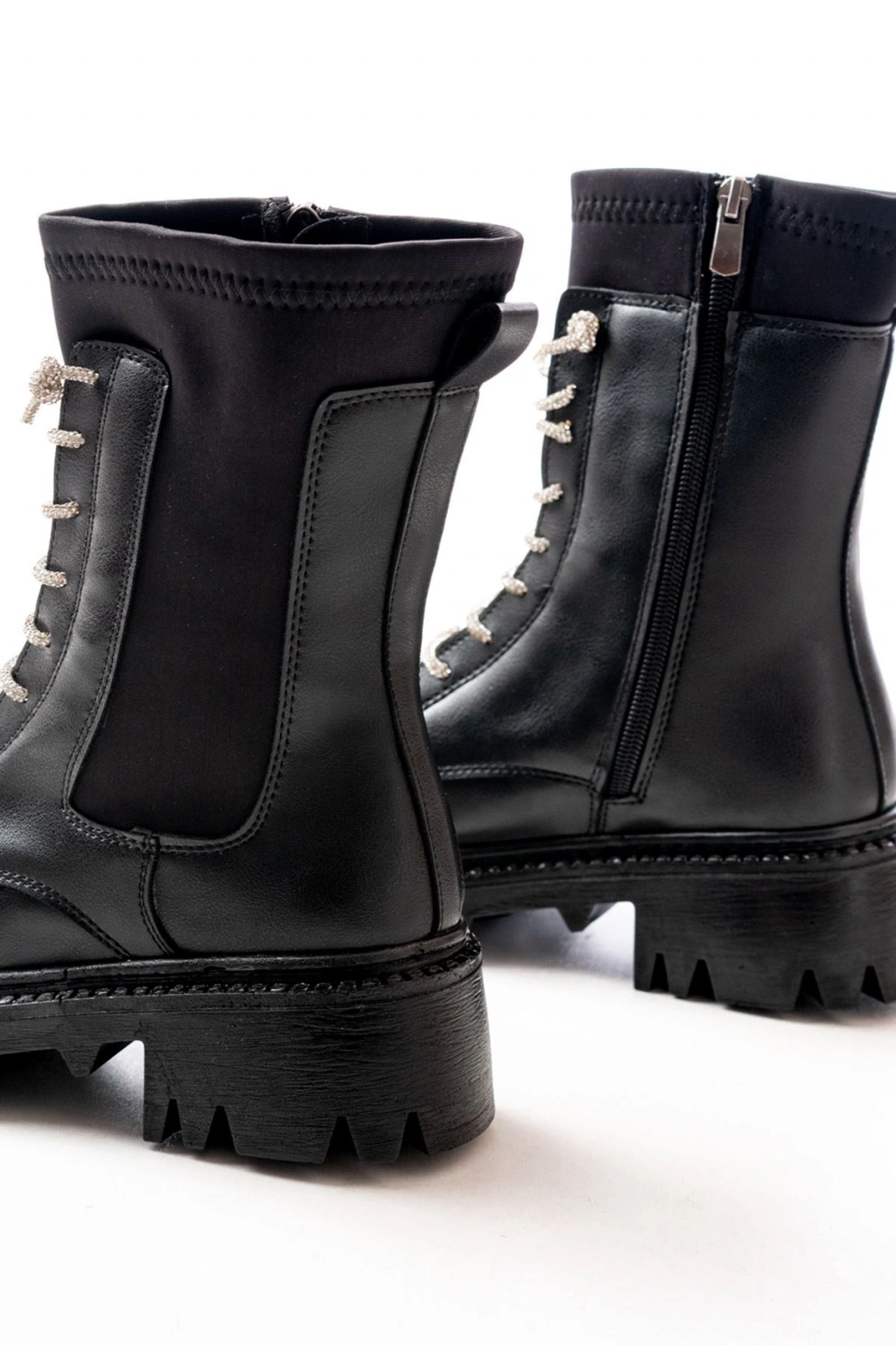 868-2006 Siyah Düz Topuklu Bağcıklı Fermuarlı Günlük Kadın Bot