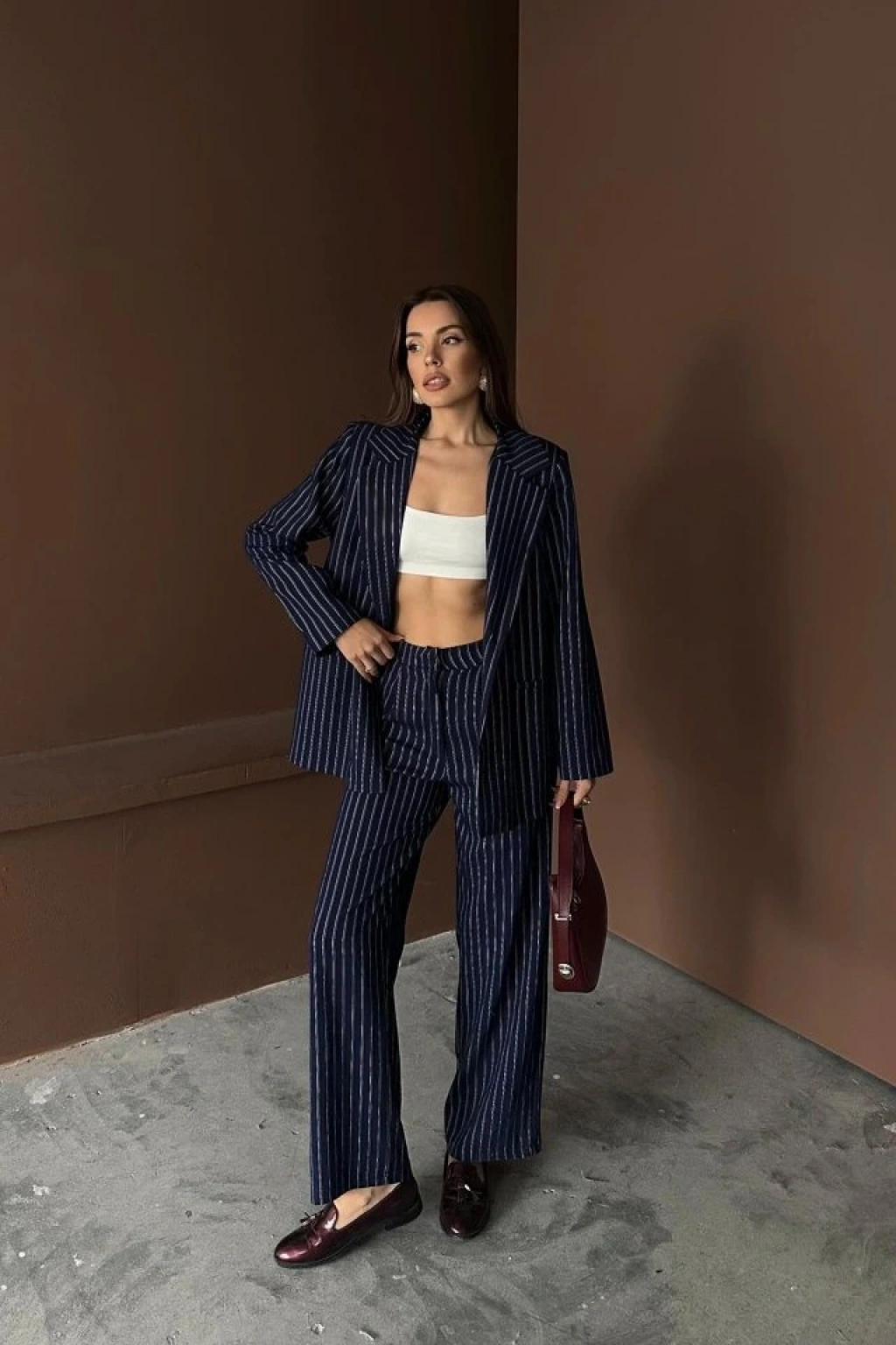 Lacivert Çizgili Ceket Ve Pantolon Takım