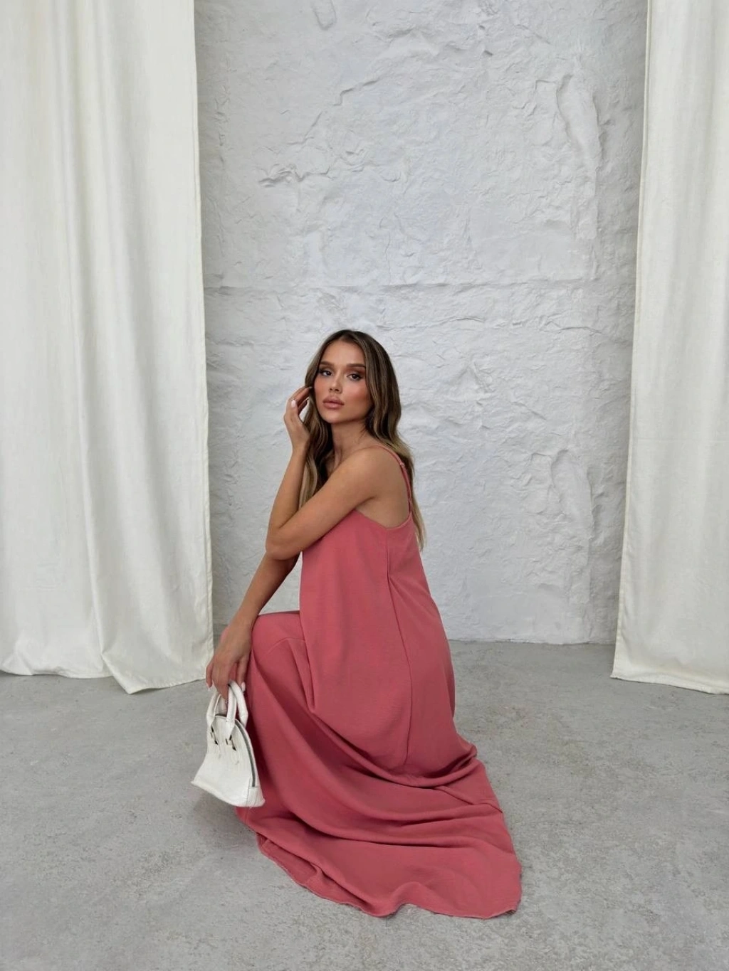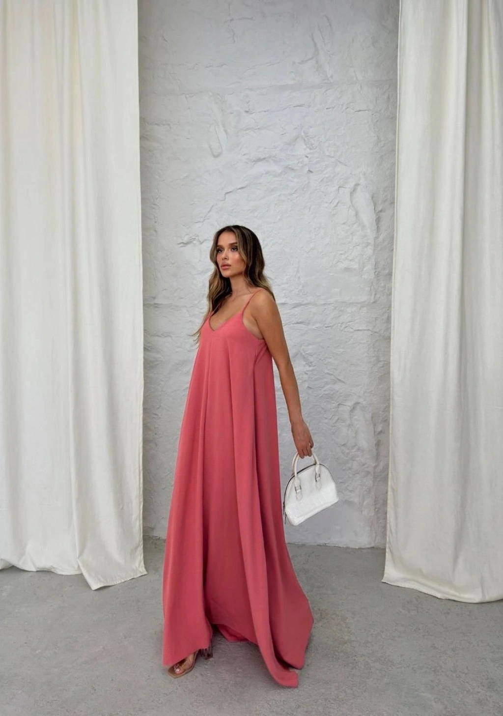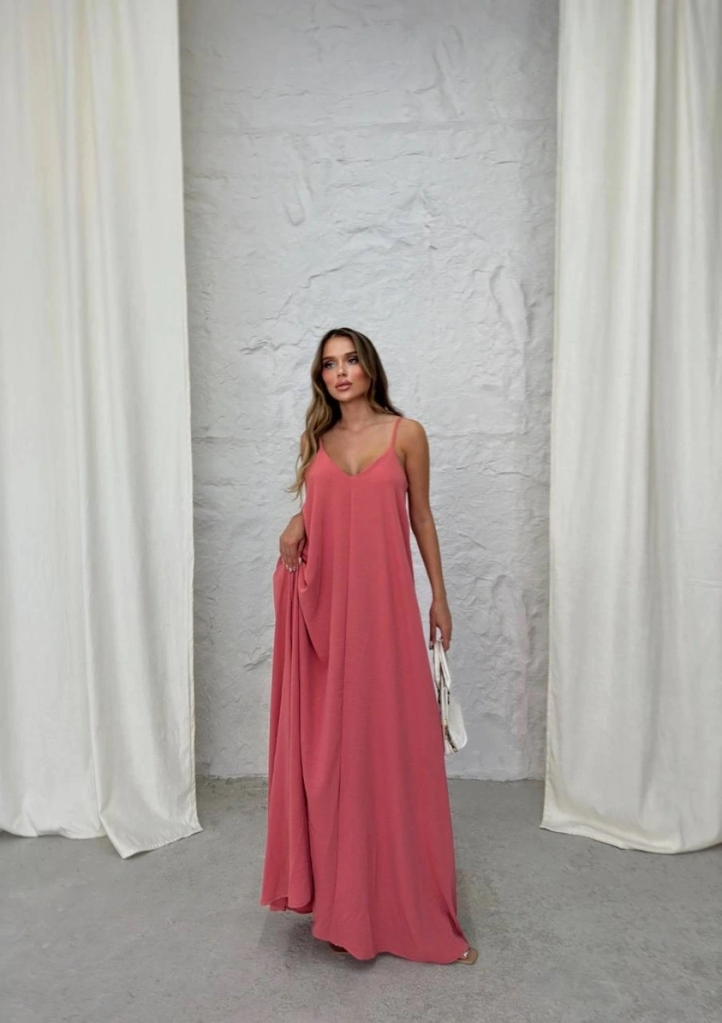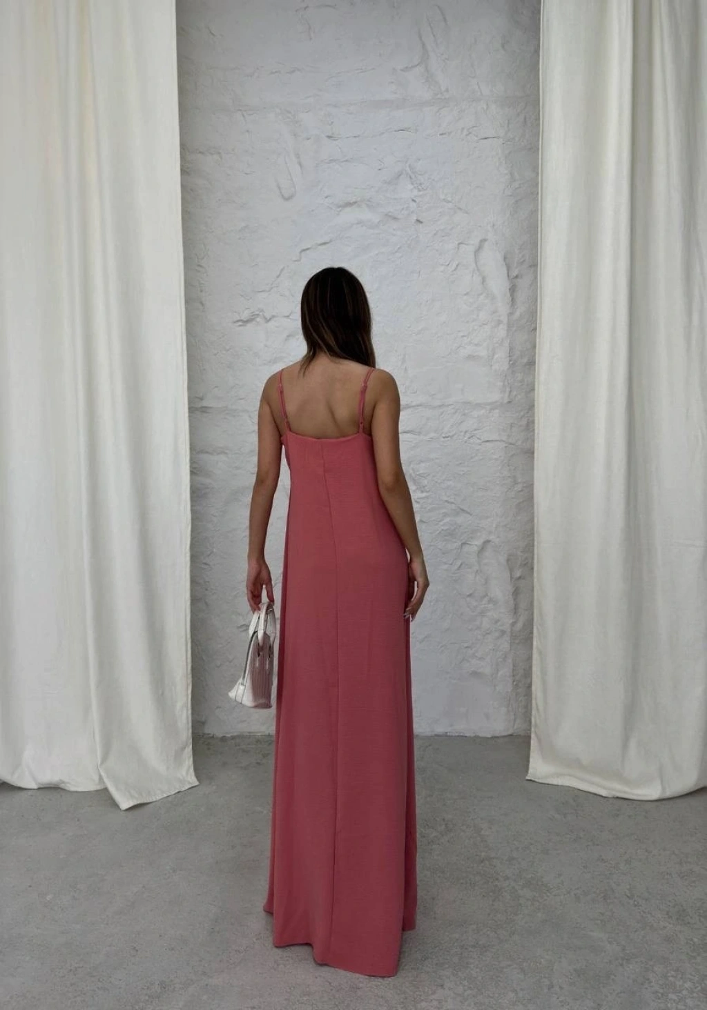 Aerobin uzun elbise, feminen ve şık bir görünüm sunar. Siyah düğme detaylarıyla hareketlendirilmiş olan bu pembe elbise, günlük giyimden özel davetlere kadar geniş bir kullanım alanı sunar.