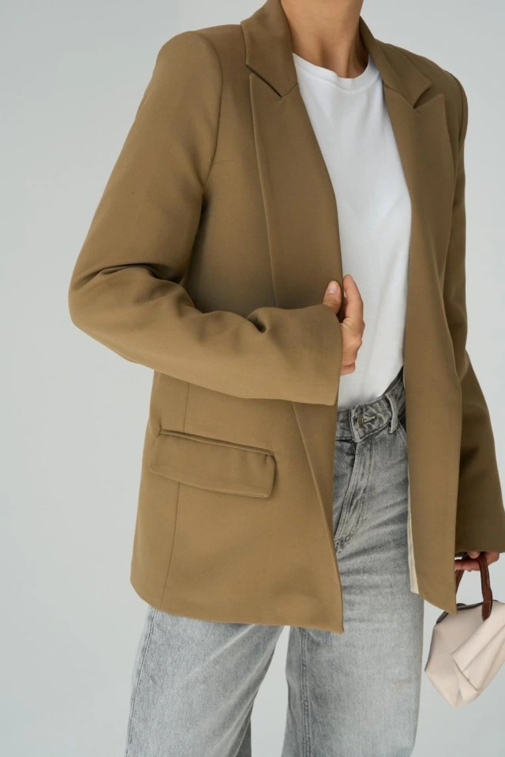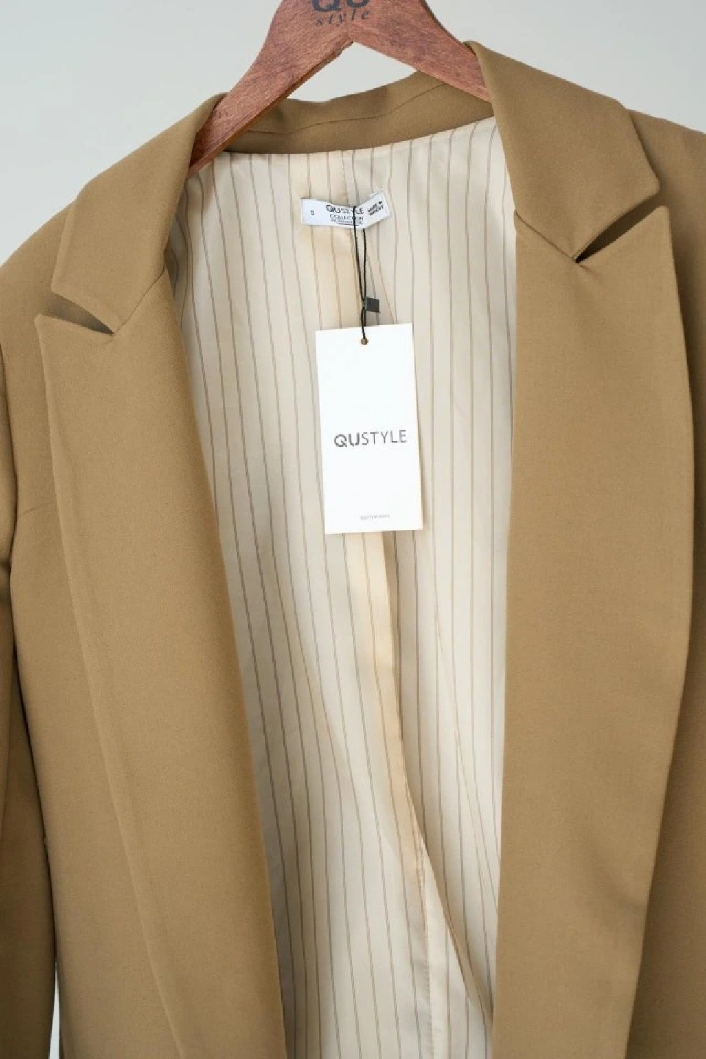 Astarı Çizgili Ceket - Vizon