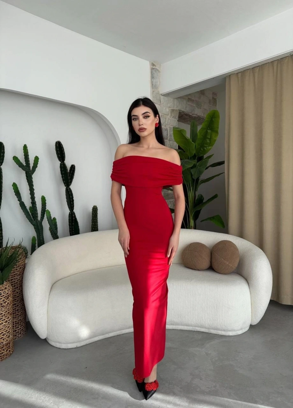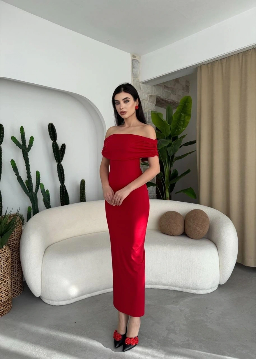 Modelin Ölçüleri: Boy:165, Kg:55, Göğüs:90, Bel:72, Kalça: 100