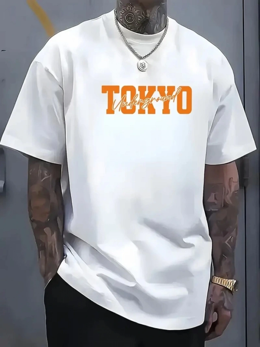 Baskılı Oversize Bisiklet Yaka Tshirt Beyaz