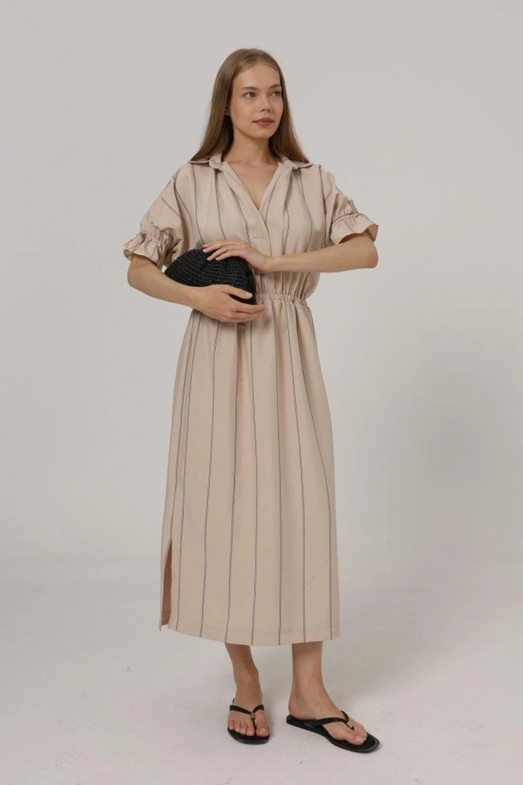 Modelin Ölçüleri: Boy:165, Kg:55, Göğüs:90, Bel:72, Kalça: 100