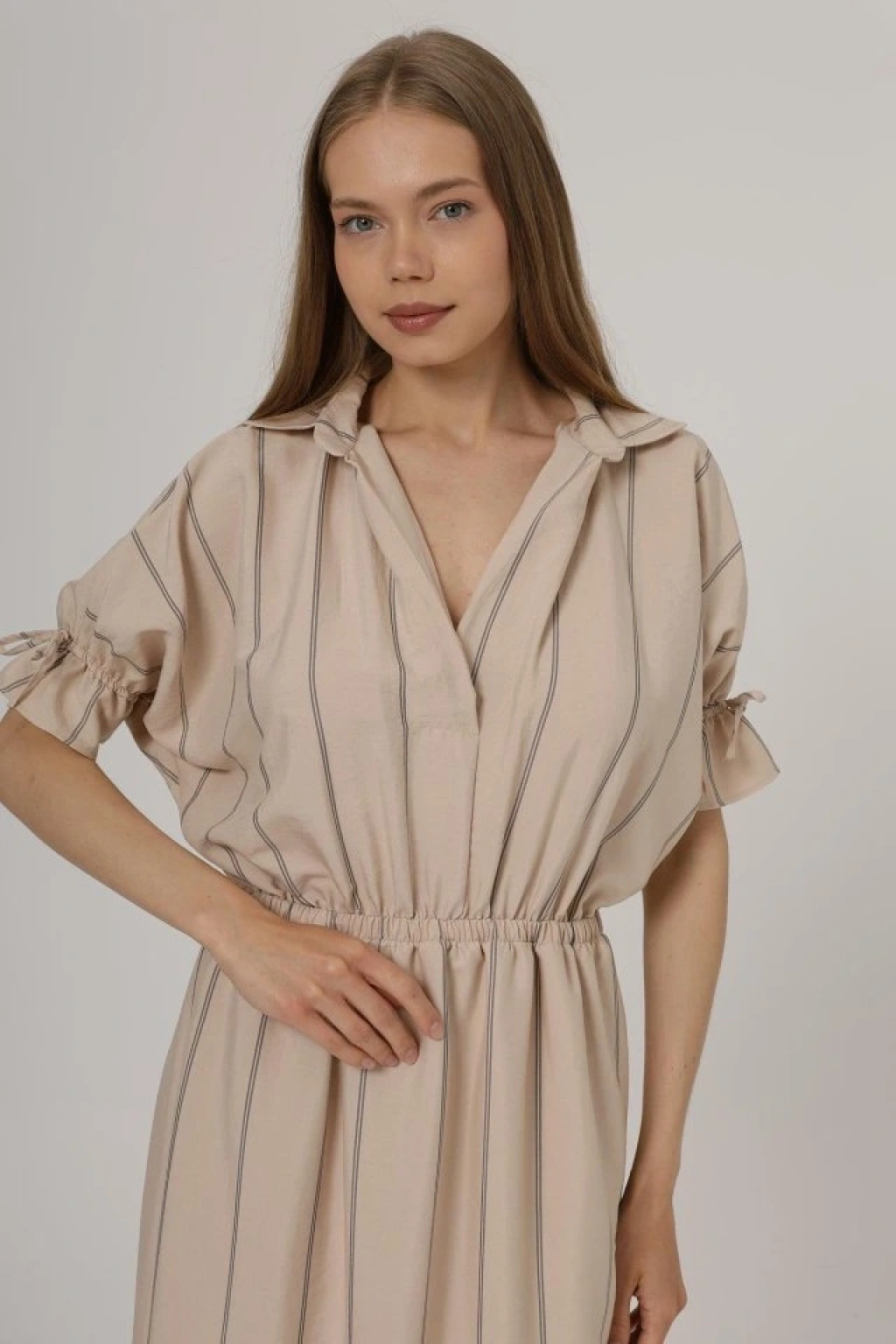 Beli Lastikli Elbise - Taş
