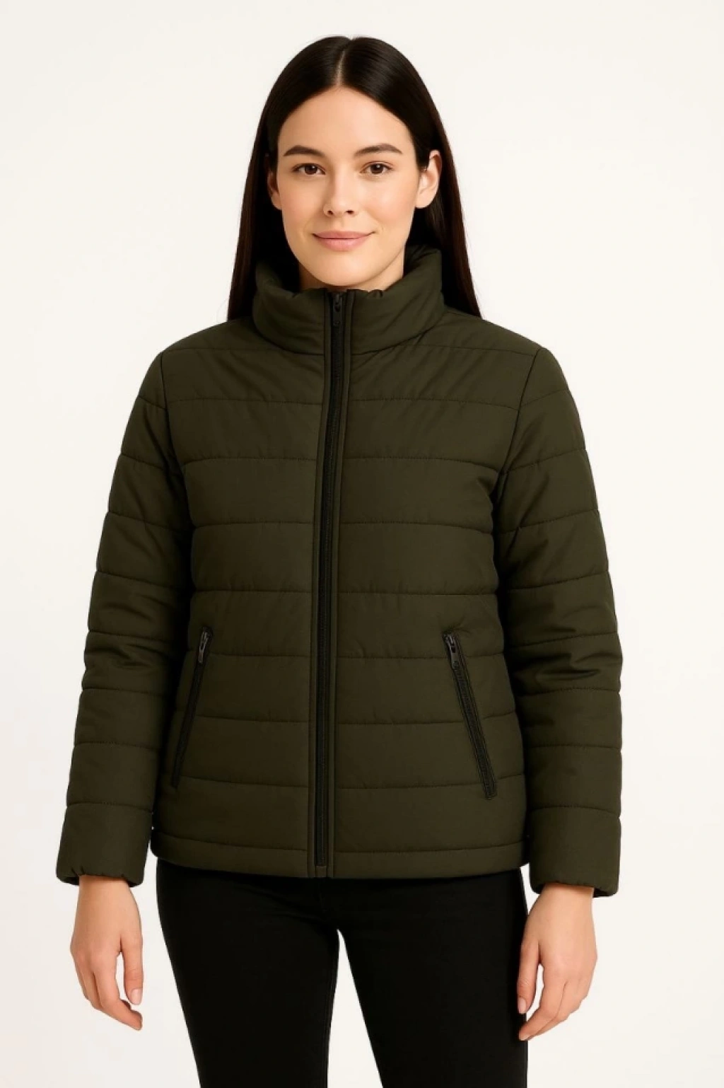 Bomber ont Ceket – u İtici Kumaş, Kapitone Astarlı, Fermuarlı, Kışlık Haki
