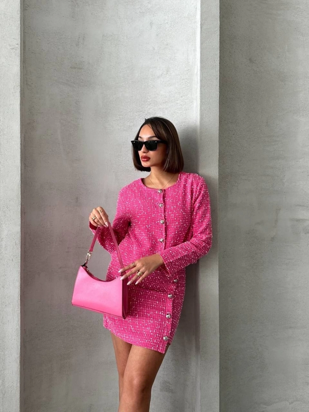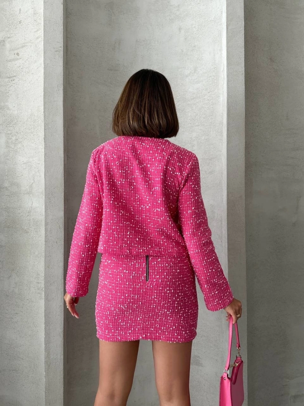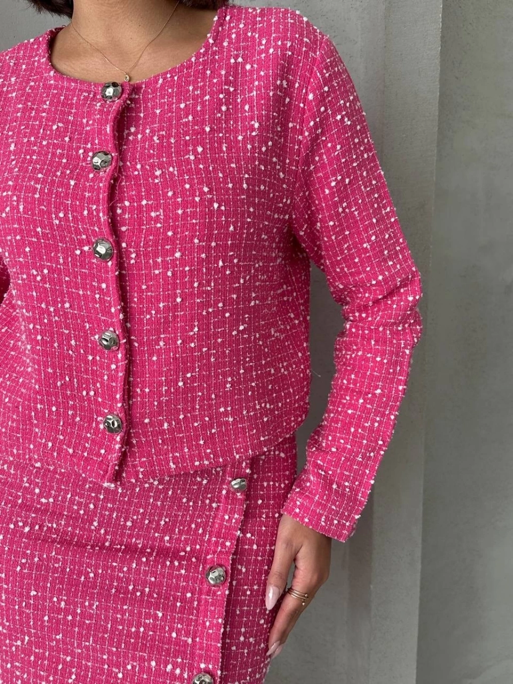 Şıklığı ve rahatlığı bir arada sunan chl kumaştan üretilmiş ceketli etek takımı, gardırobunuzun vazgeçilmezi olmaya aday! H24443 modeli ile öne çıkan bu takım, kadın giyiminde zarif bir seçenek sunuyor.