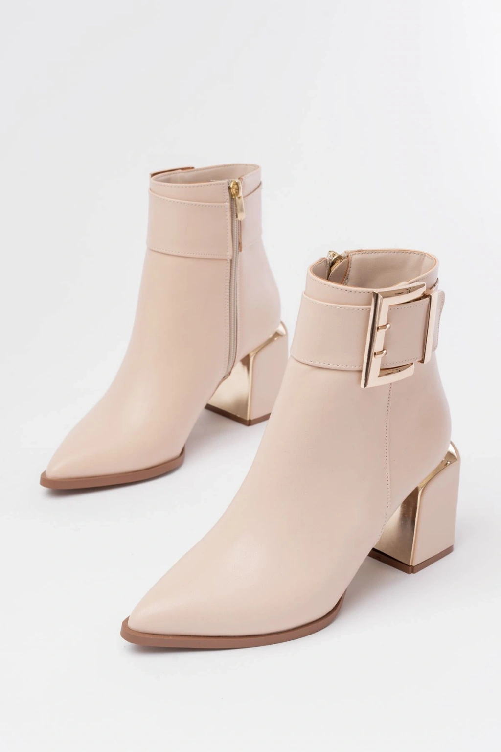 DNZ-400 Bej Toka Aksesuarlı Topuklu Fermuarlı Günlük Kadın Bot