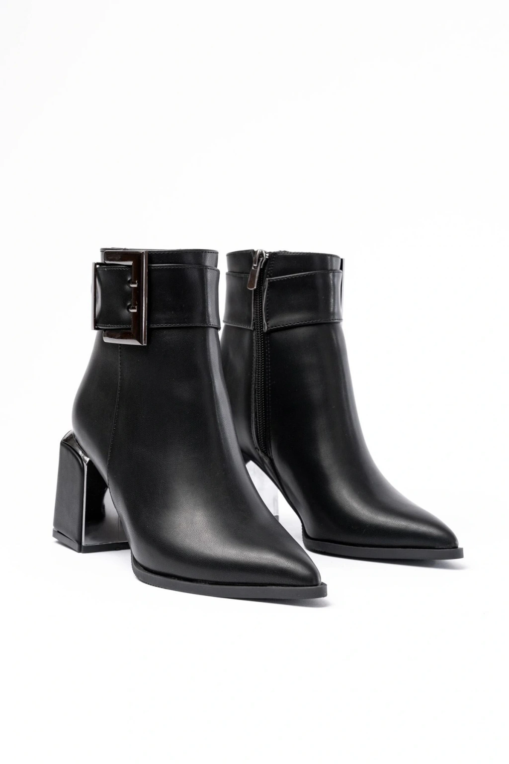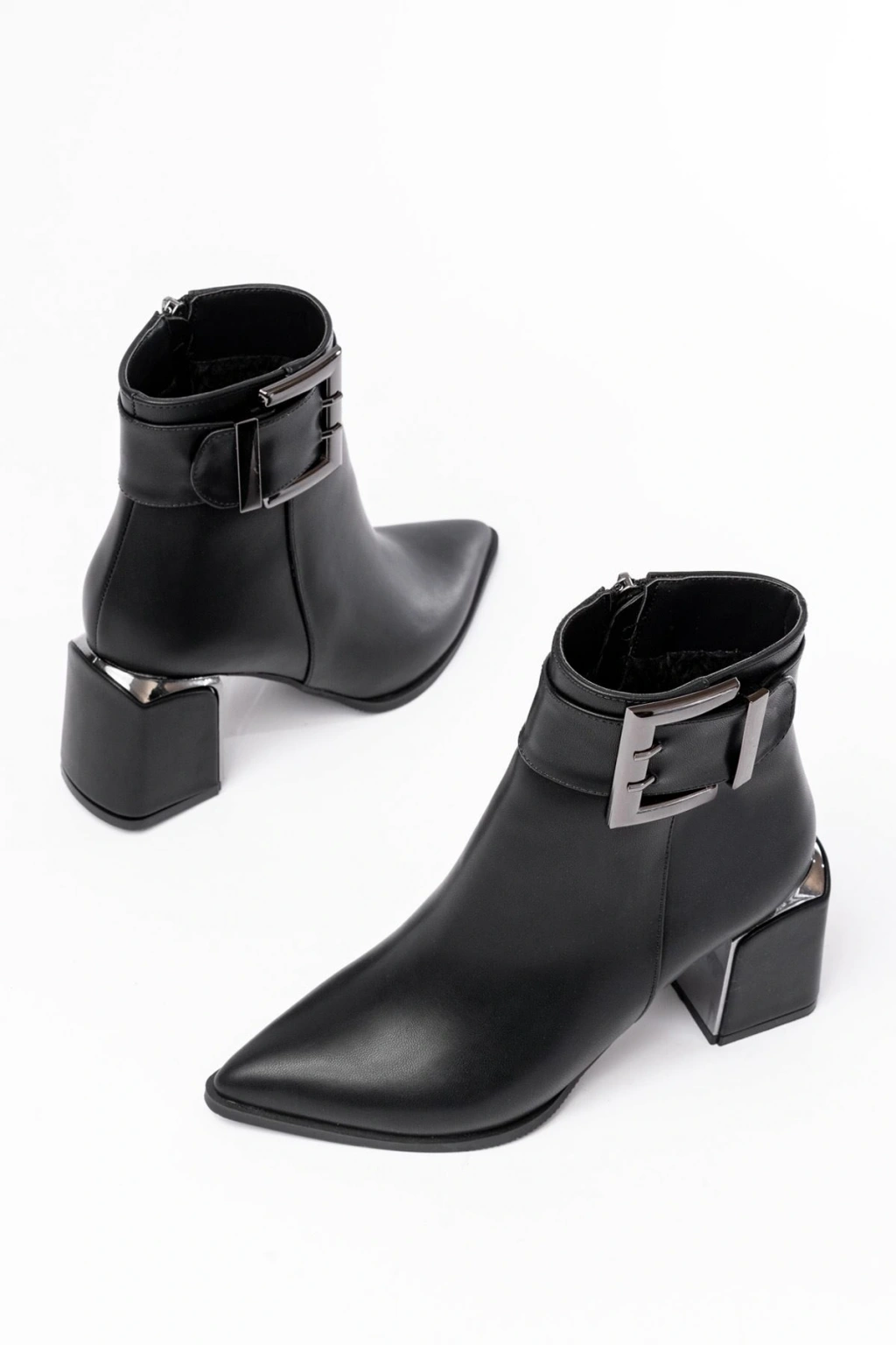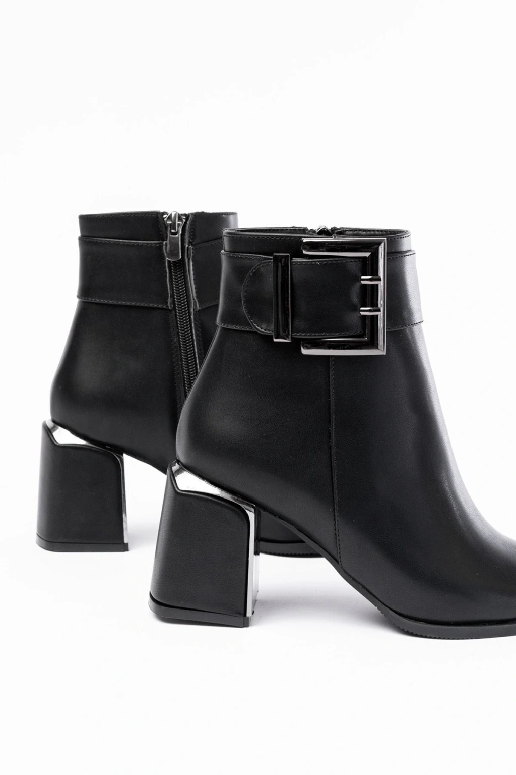 DNZ-400 Siyah Toka Aksesuarlı Topuklu Fermuarlı Günlük Kadın Bot