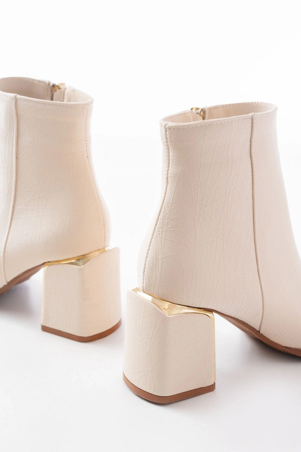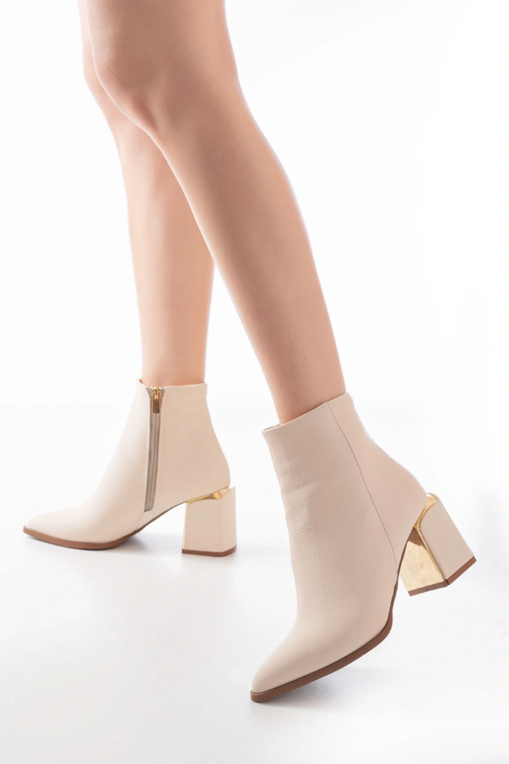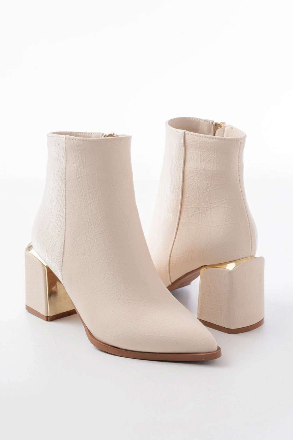 DNZ-410 Bej Fermuarlı Topuklu Kadın Günlük Bot
