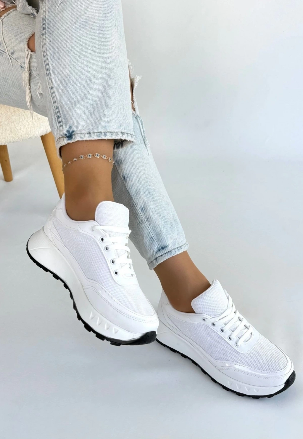Edva Beyaz Cilt Bağcıklı Spor Ayakkabı