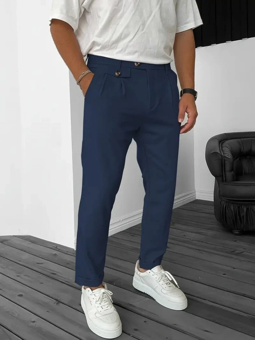 Erkek Belden Düğmeli Cepli Dokuma Pantolon