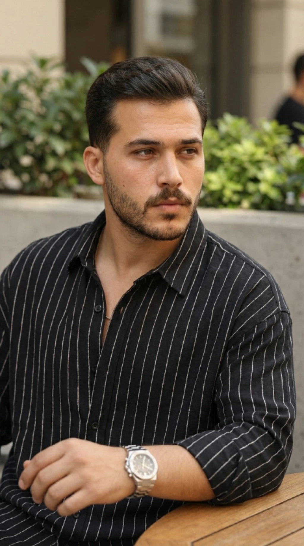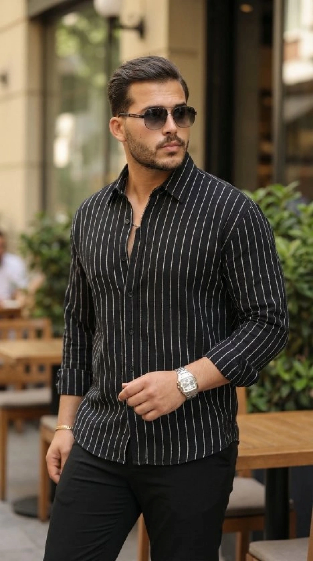 Erkek Dikey Çizgili Yarım Oversize Gömlek