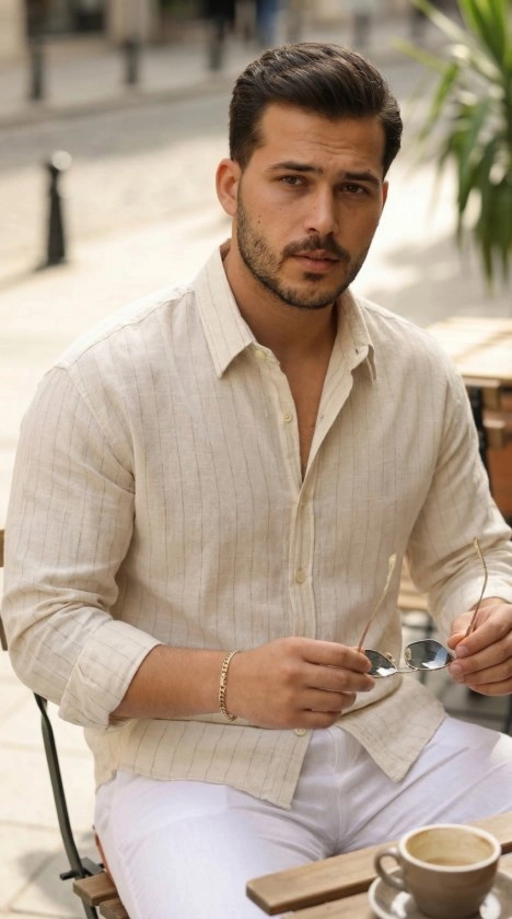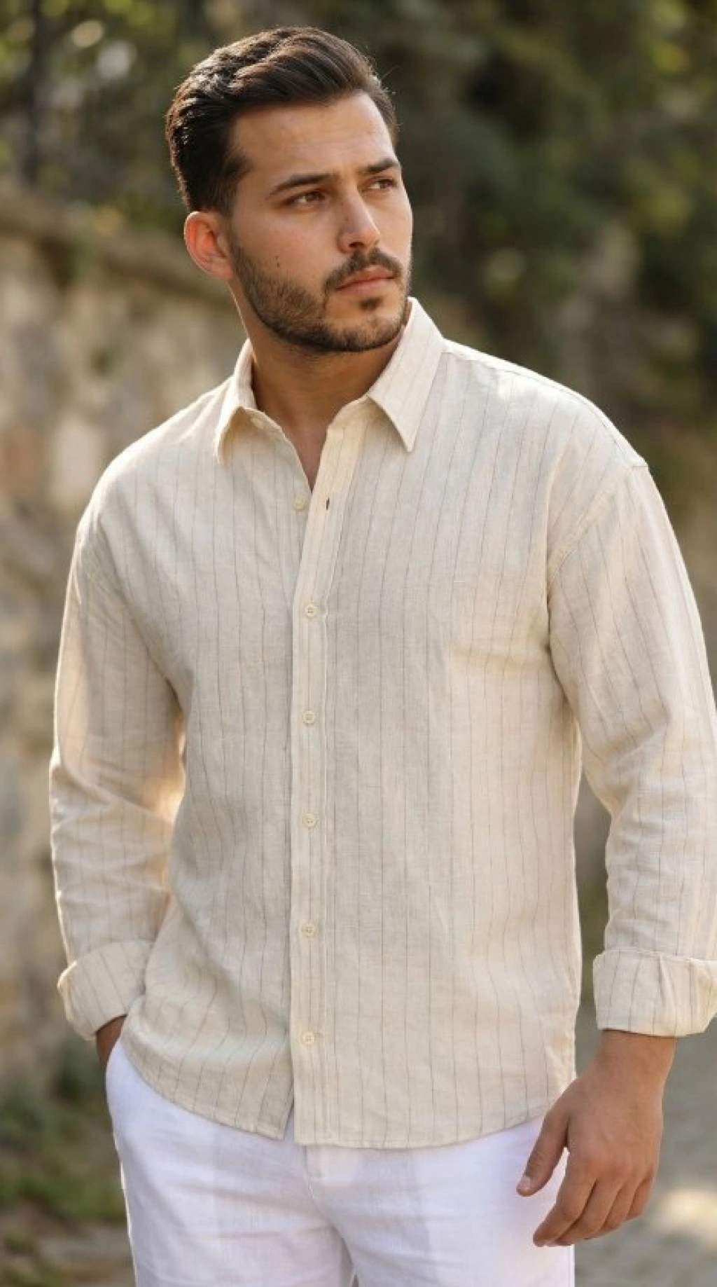 Erkek Çizgili Keten Gömlek