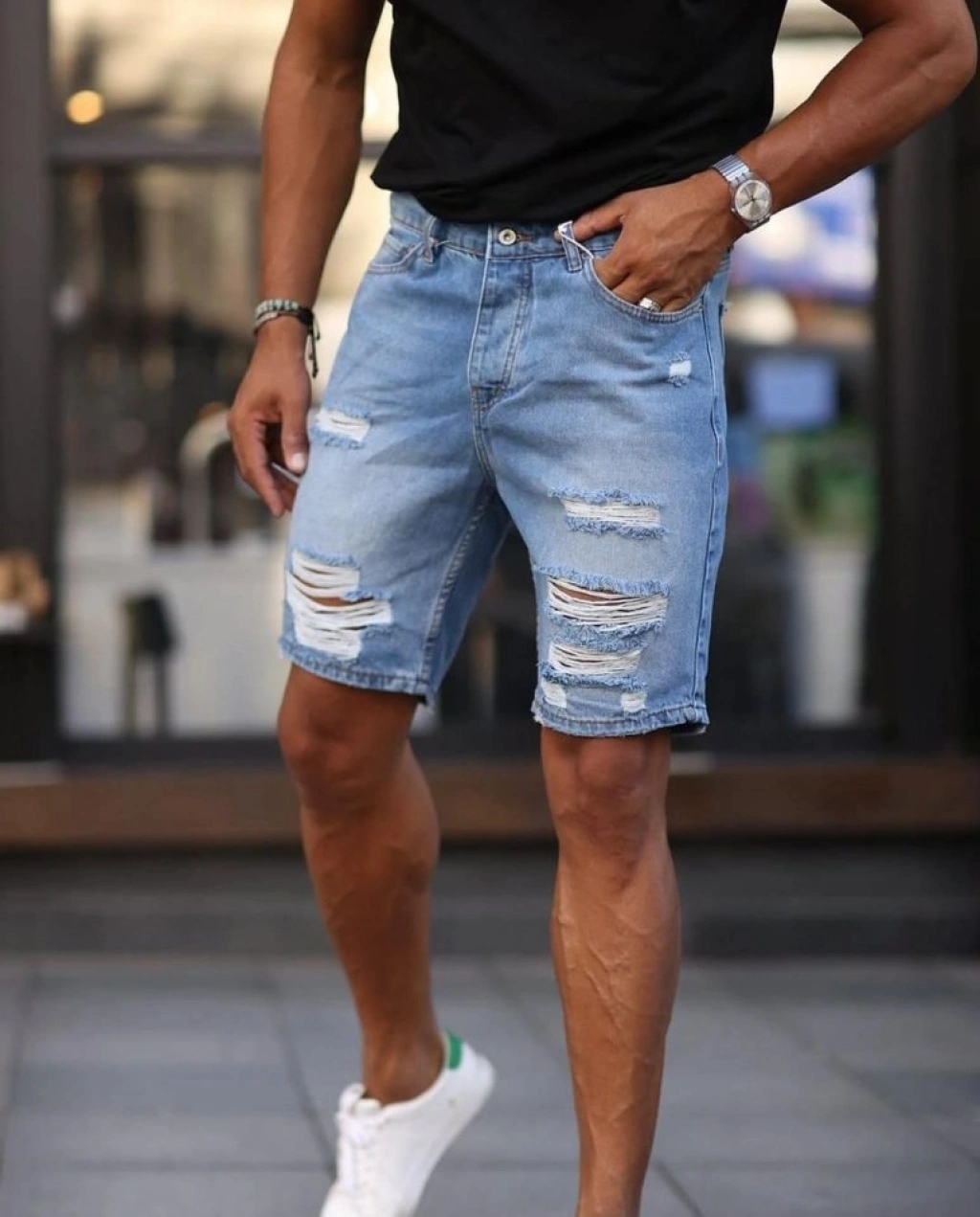 Erkek Yırtık Detaylı Kot Şort