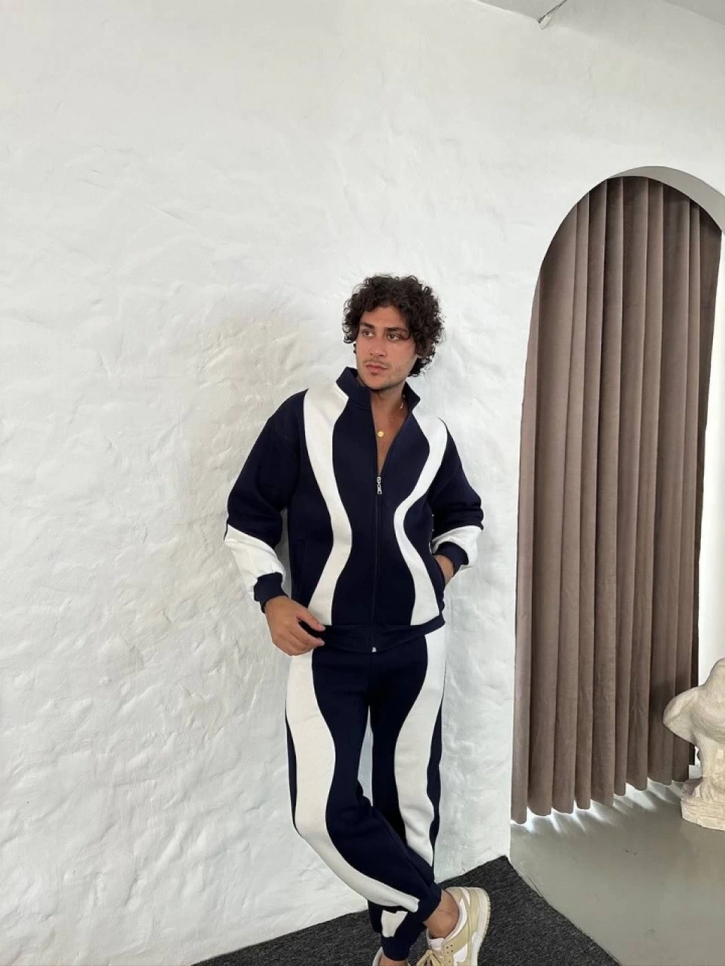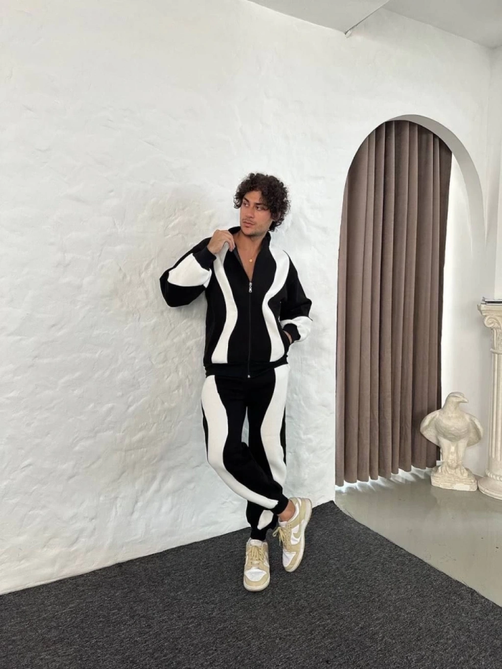 Erkek Premium Parçalı Eşofman Takım Dik Yaka Fermuarlı weatshirt, iyah