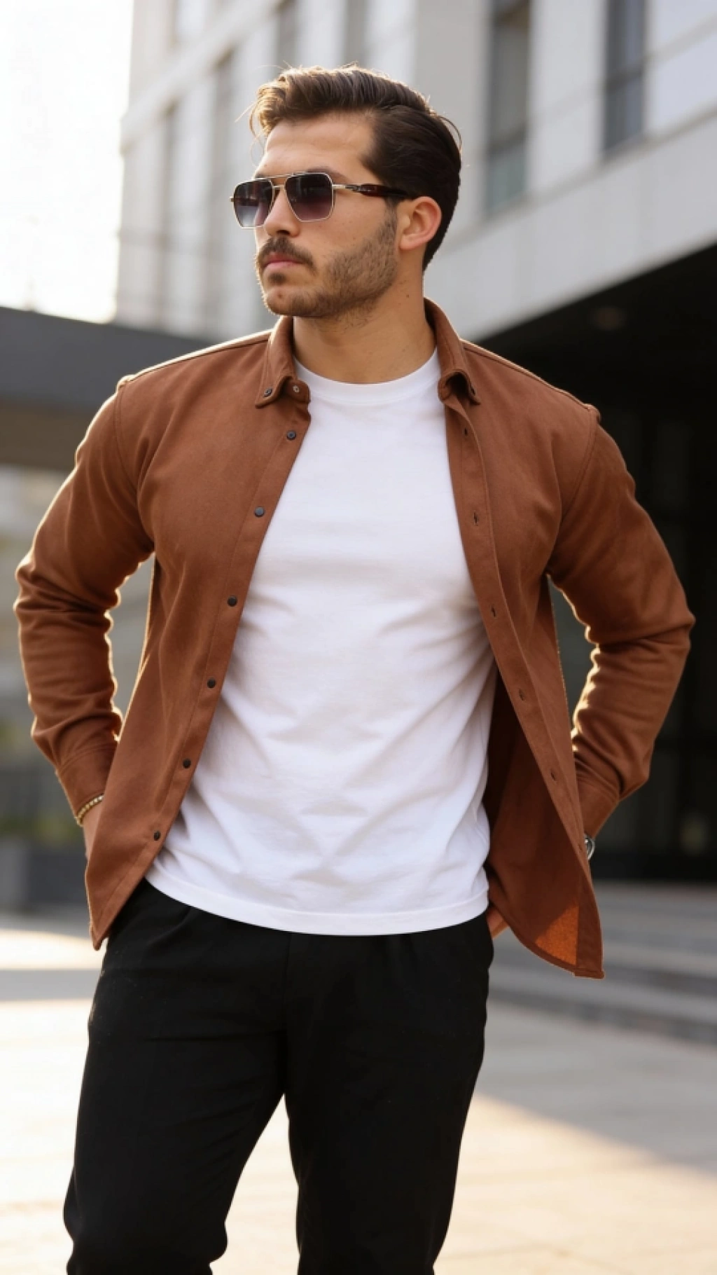 Erkek Dikey Çizgili Yarım Oversize Gömlek