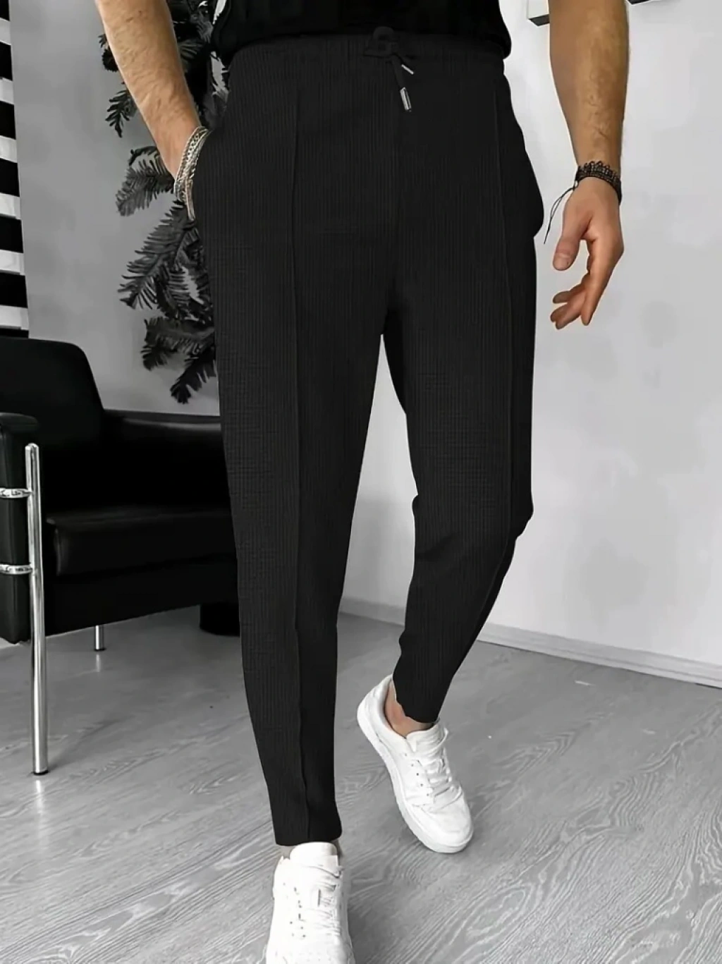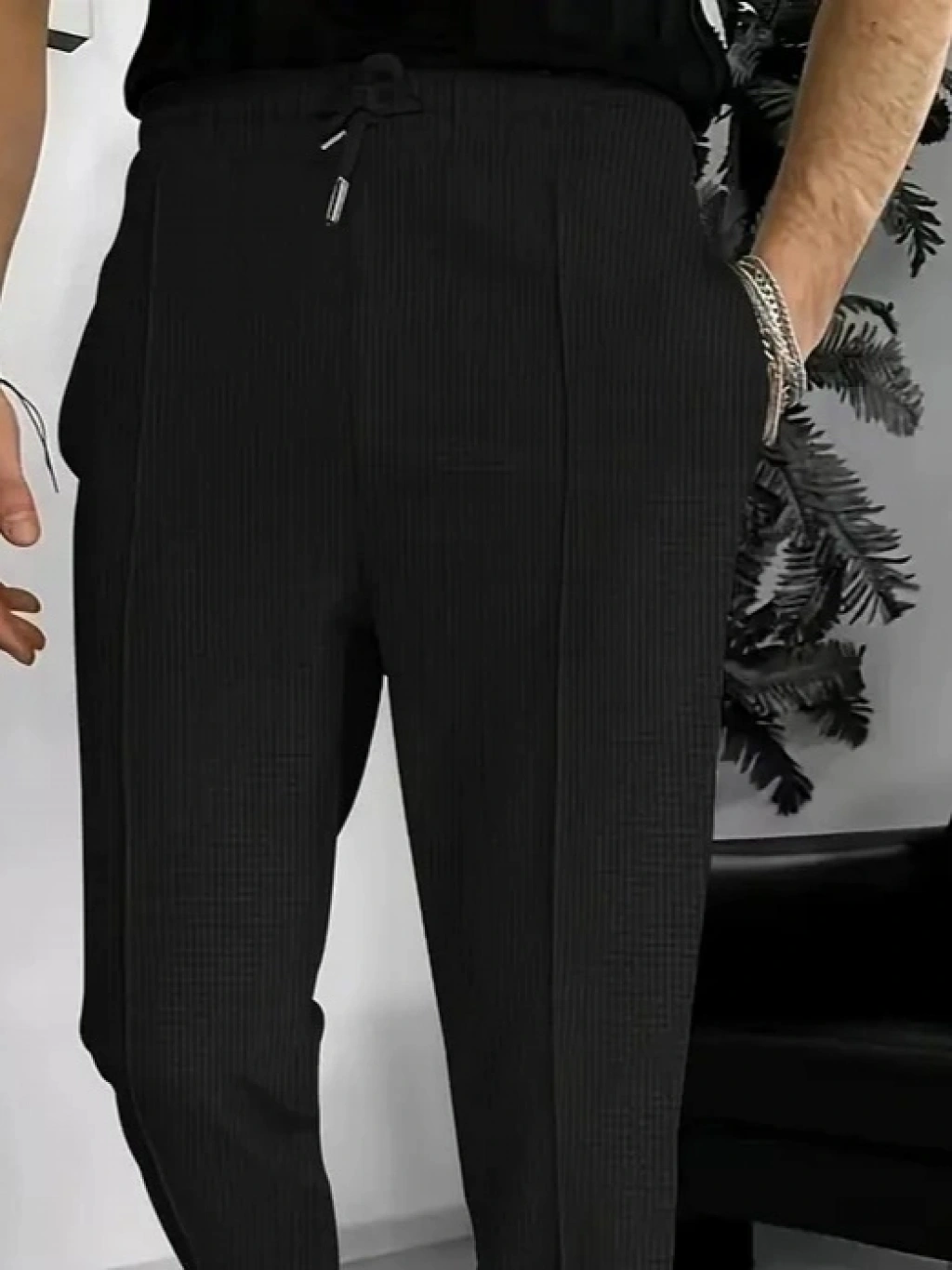 Erkek Yüksek Bel önden Bağcıklı Cepli Waffle Pantolon