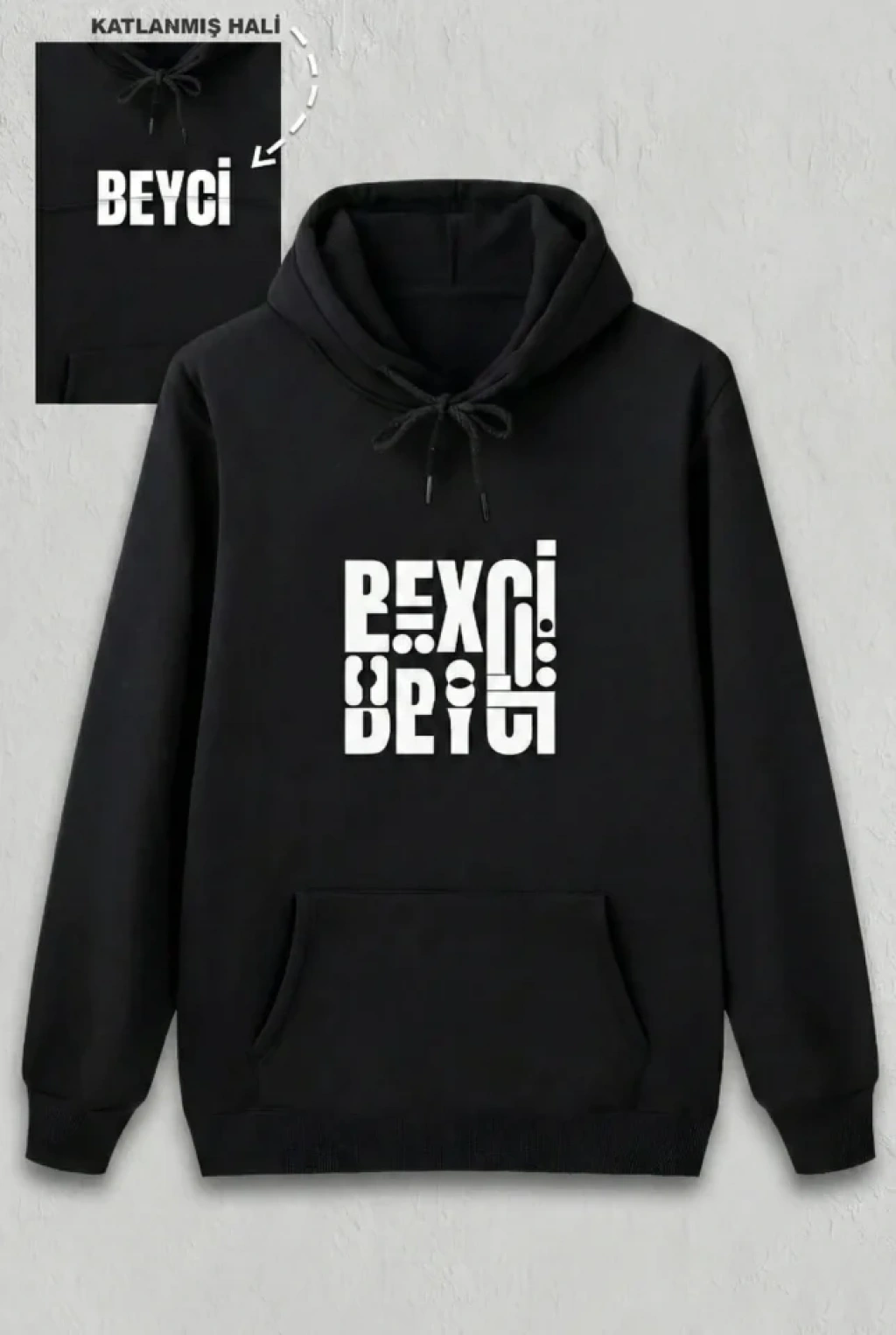 evgililer Günü Özel Kapüşonlu Beyci Baskılı Oversize weatshirt iyah