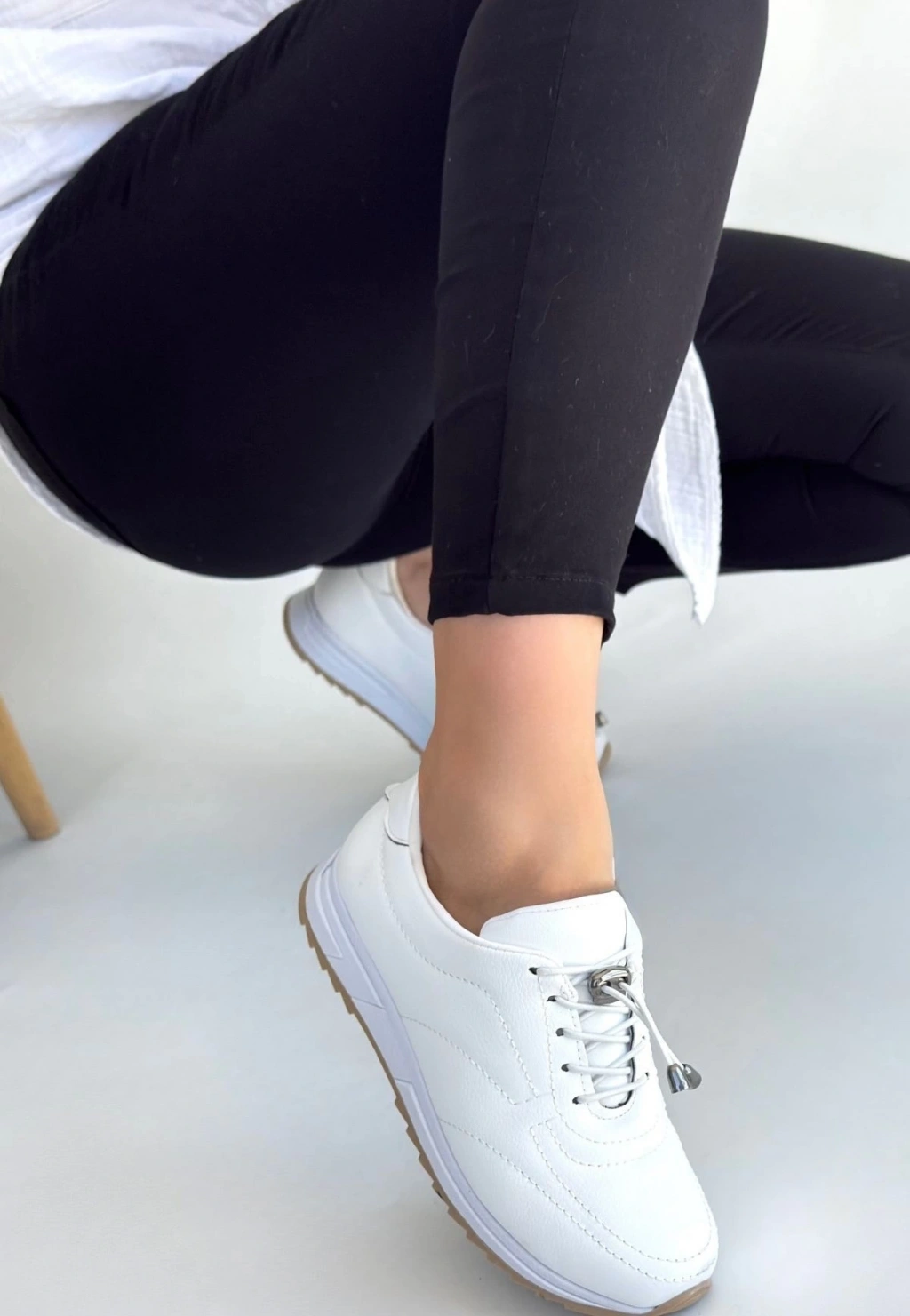 Finna Beyaz Cilt Bağcıklı Spor Ayakkabı
