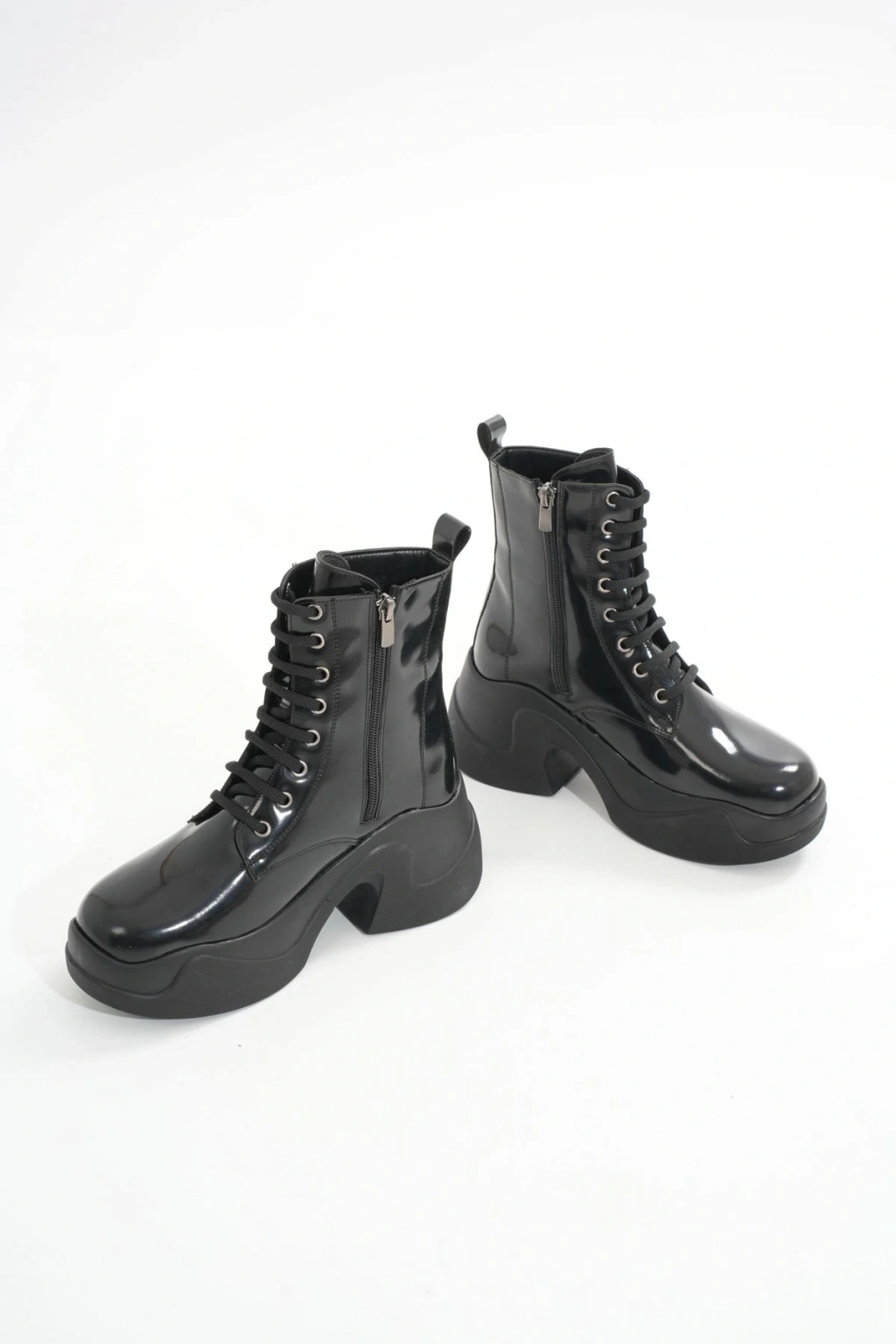 FZ-2550 Siyah Rugan Yüksek Tabanlı Bağcıklı Fermuarlı Günlük Kadın Bot