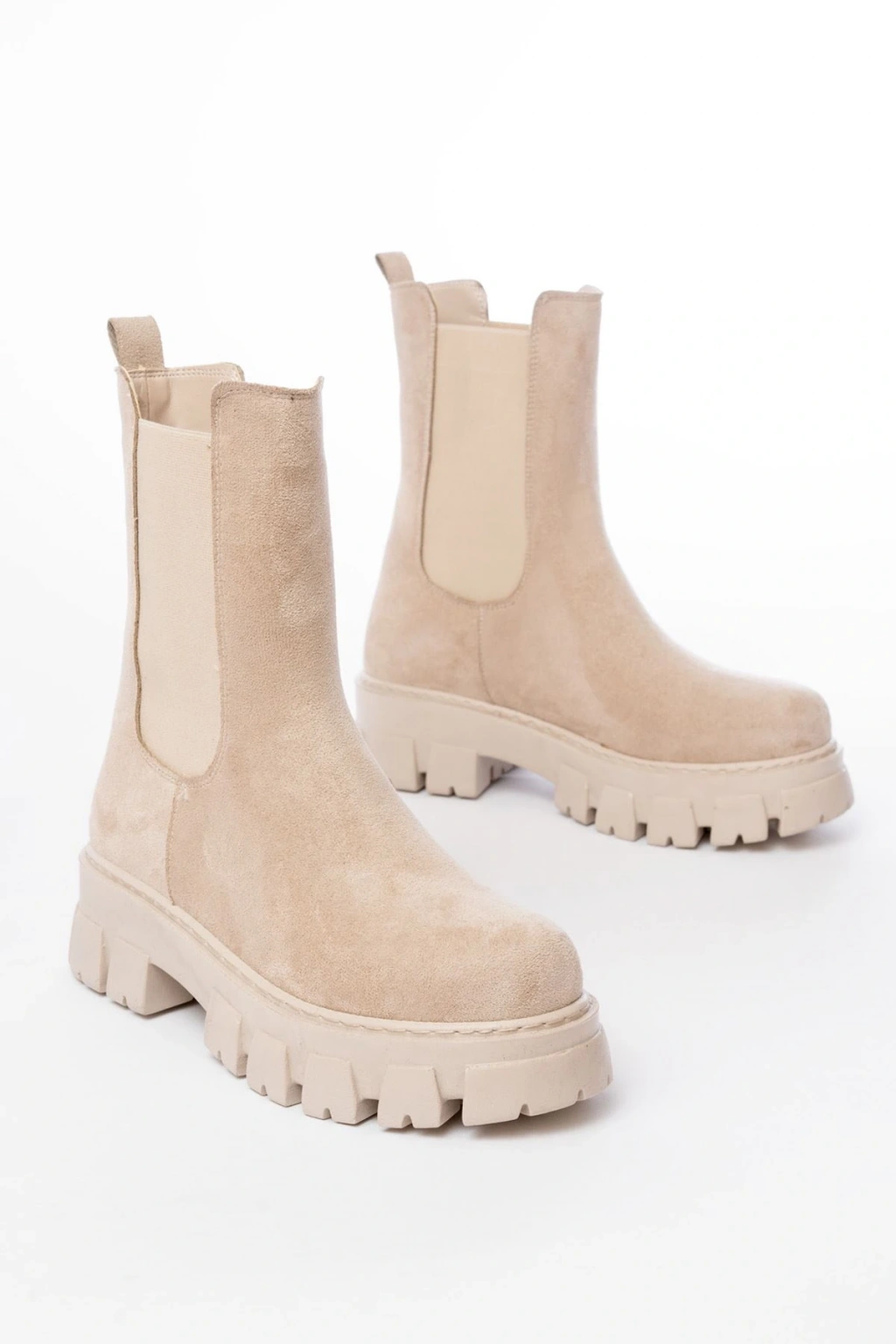 FZ-299 Bej Süet Yüksek Tabanlı Lastikli Günlük Kadın Bot