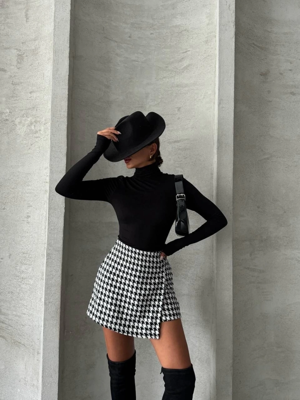 Kaz ayağı deseniyle trend bir tarz oluşturur.